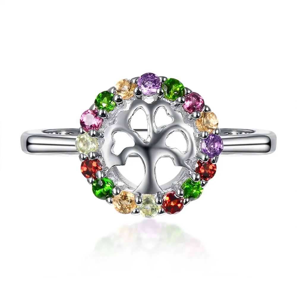 Hutang Natural Multi-color Gemstones Family Tree Jewelry Sets Solid 925 Sterling Silver Ring & Pendant Fine Jewelry For Women's