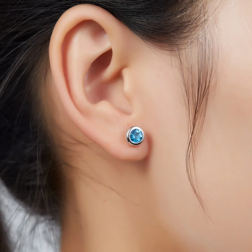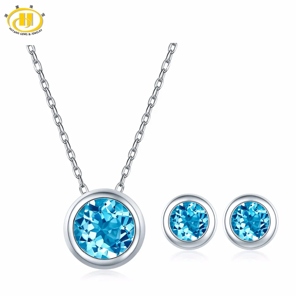 Hutang Pendant & Earrings Natural Gemstone Blue Topaz Solid 925 Sterling Silver Fine Jewelry Sets For Women's Gift 2020 NEW