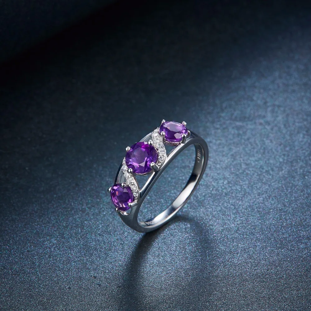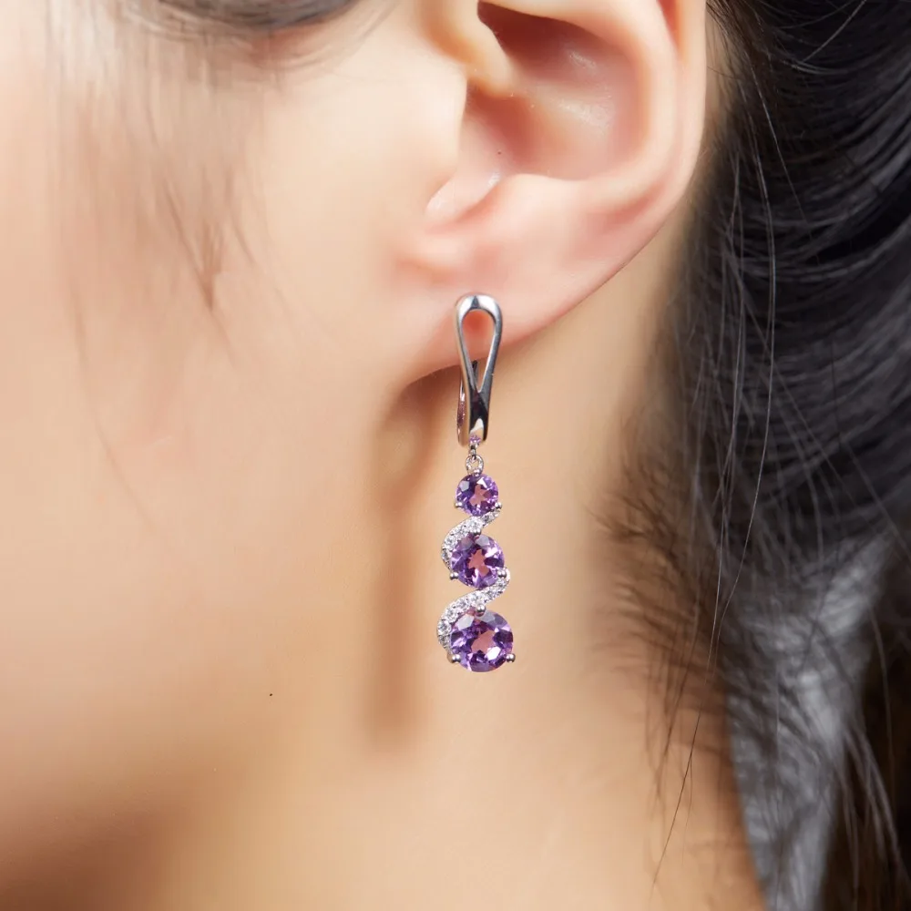 Hutang Solid 925 Sterling Silver Natural Amethyst Jewelry Sets Pendant Ring Earrings for Women Gemstone Fine Jewelry Party Gift