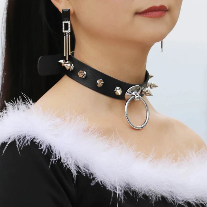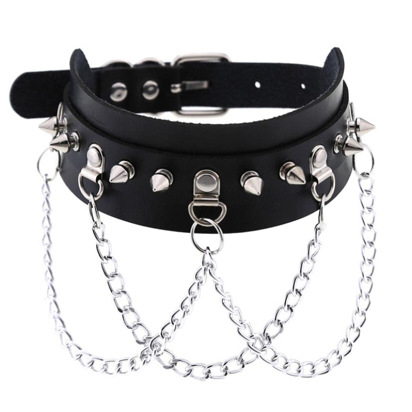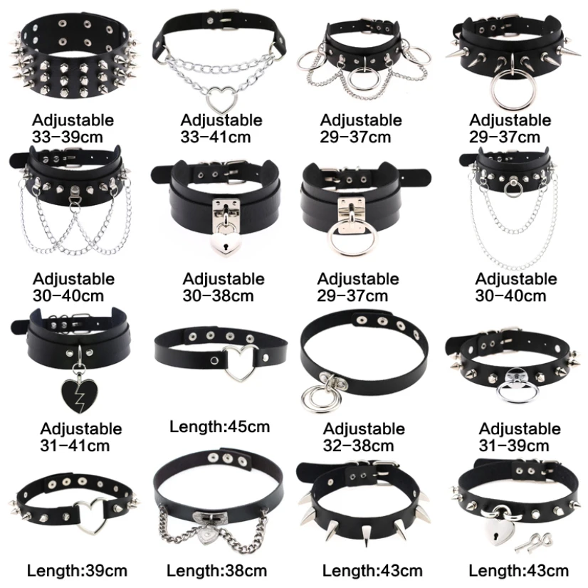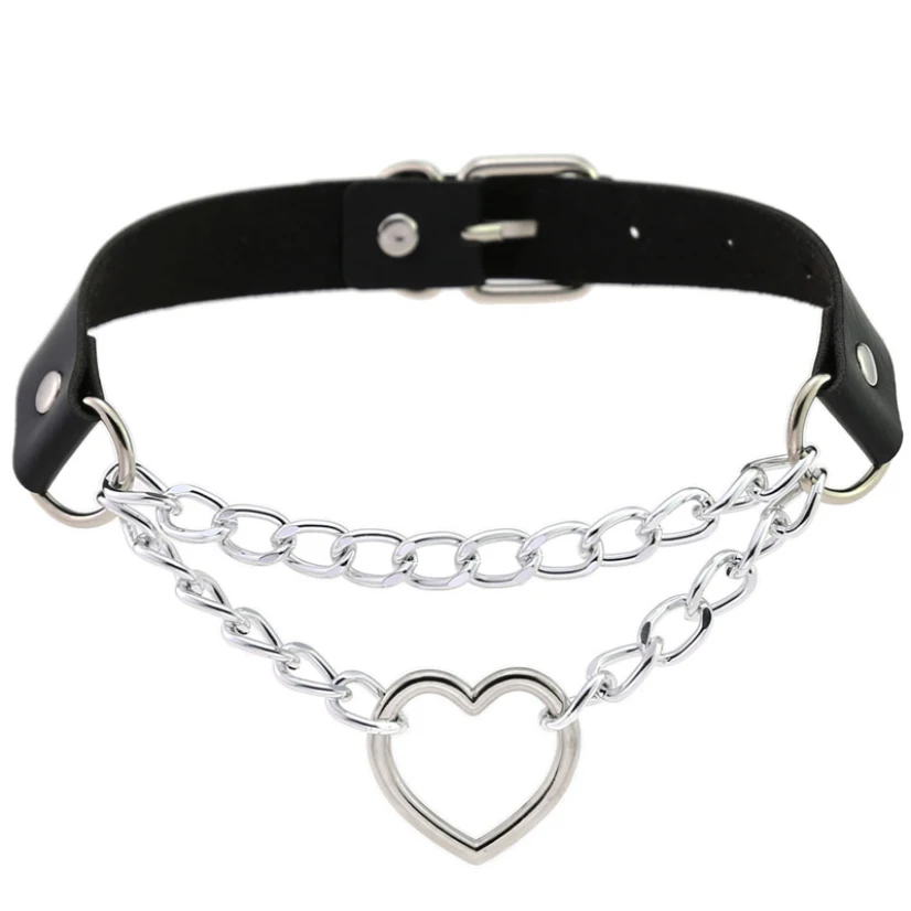 Hyperbole Choker Necklace Women Punk Hip Hop Jewelry On The Neck Chain Heart Necklace Black Collar Rivet Ladies Goth Accessories