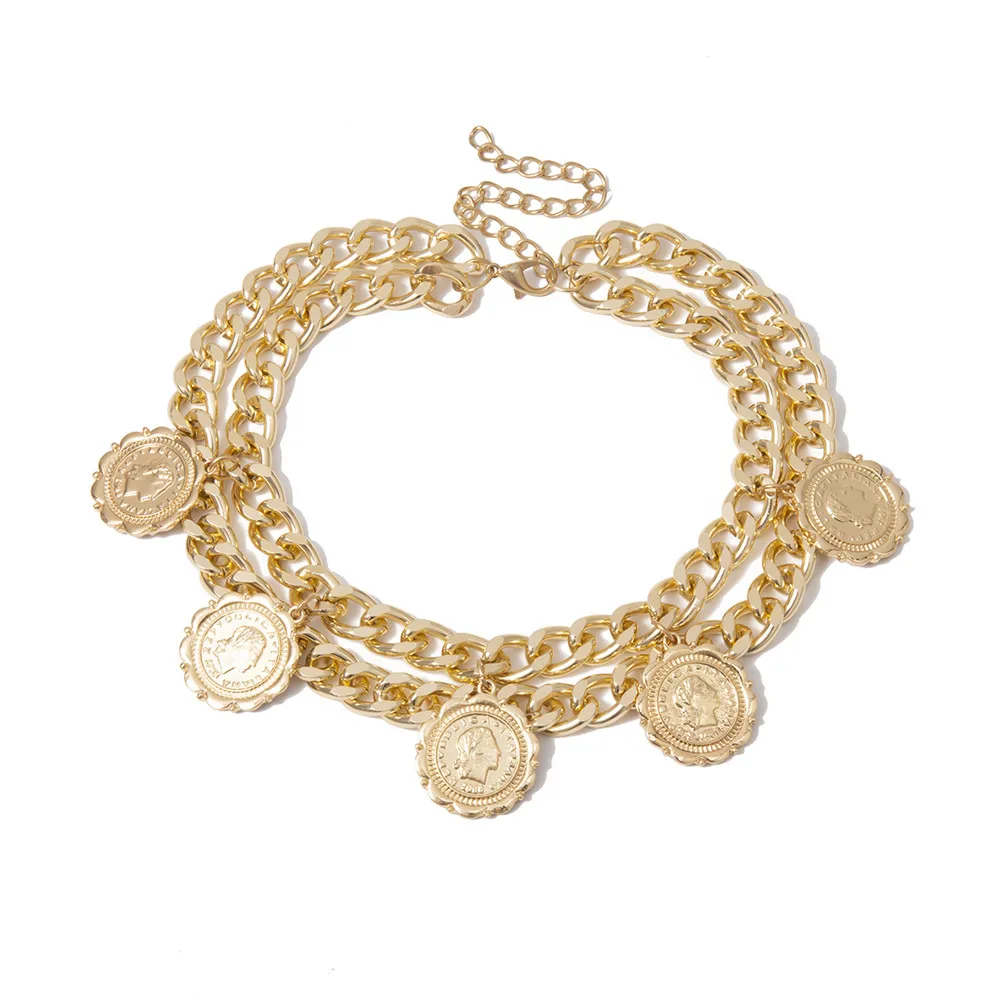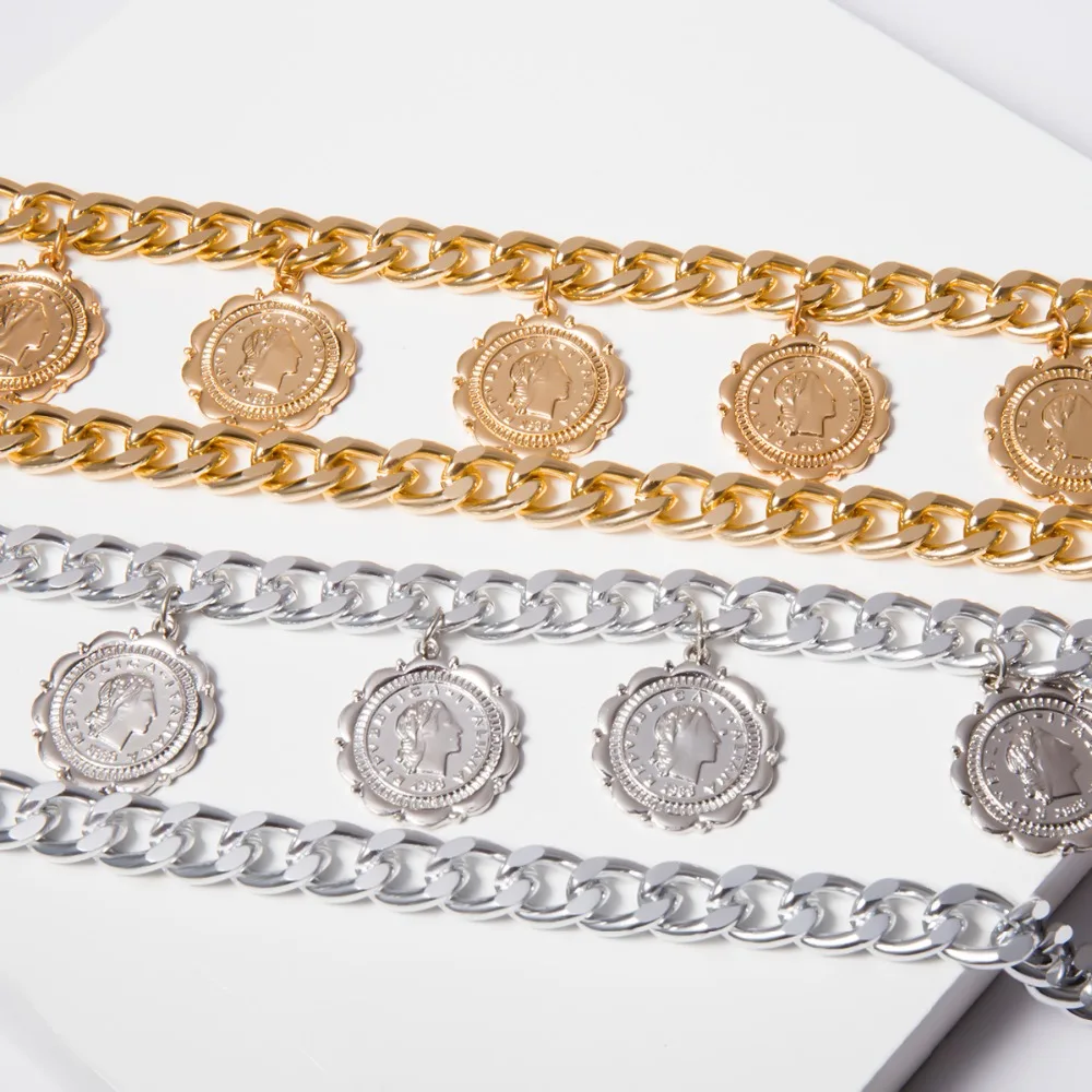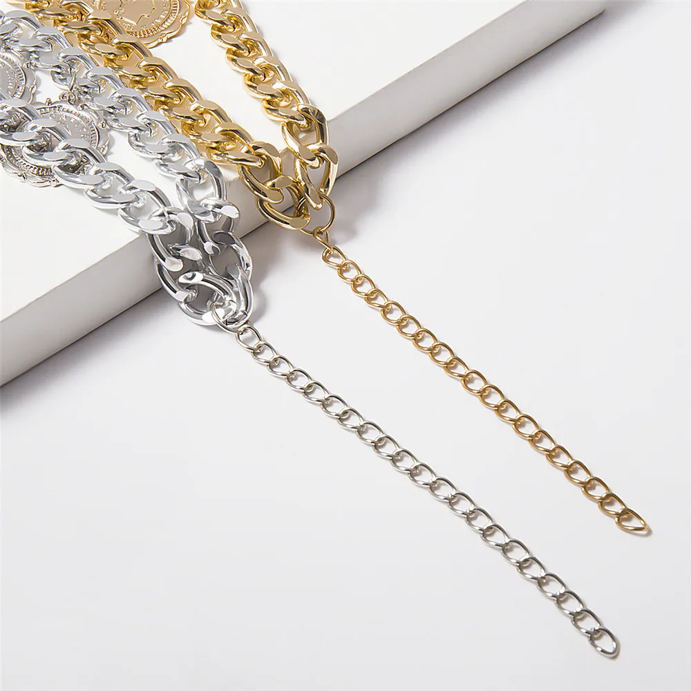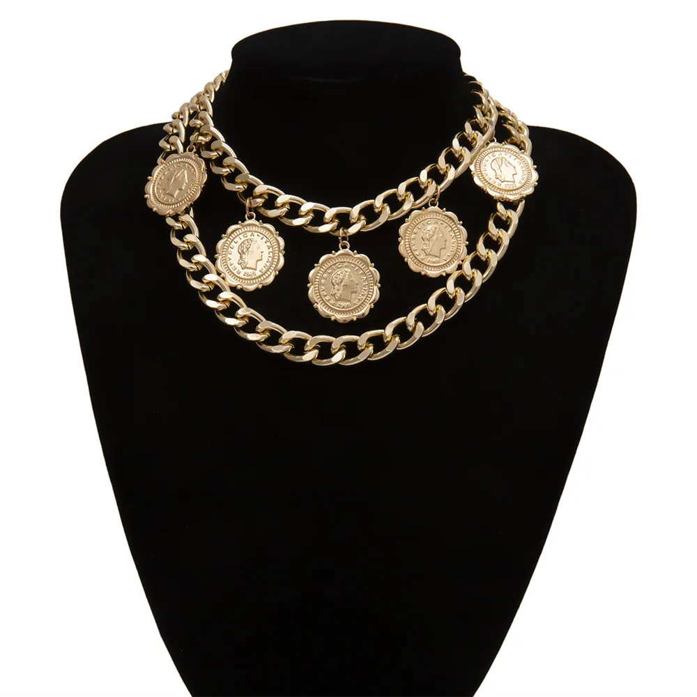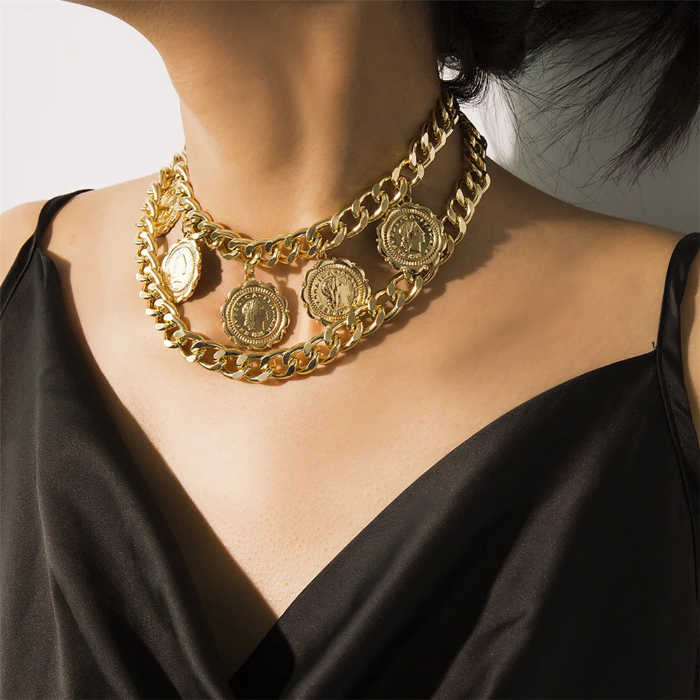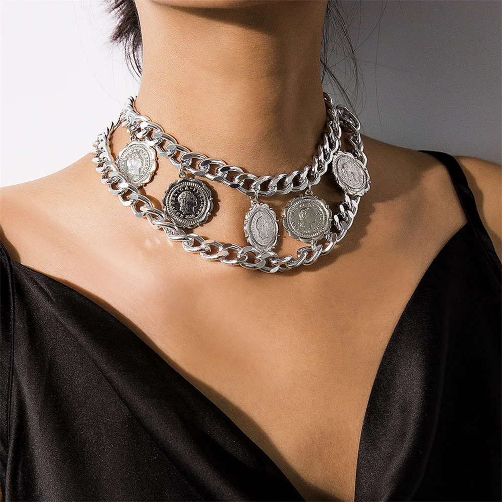 Hyperbole Gothic Cuban Chunky Necklace for Women Vintage Queen Coin Pendant Necklace Statement Hip hop Jewelry