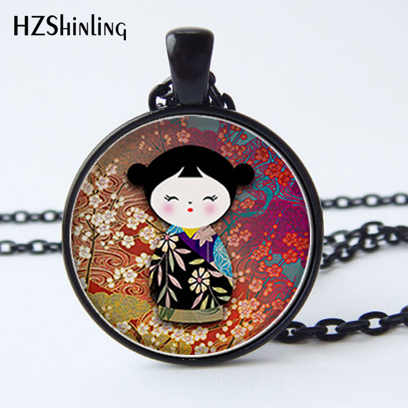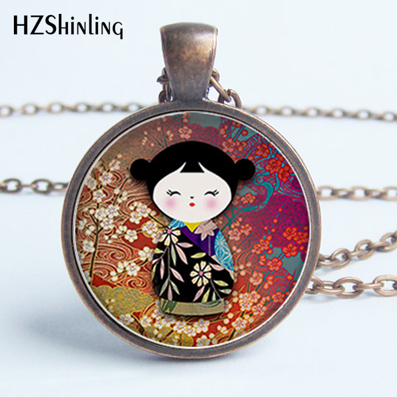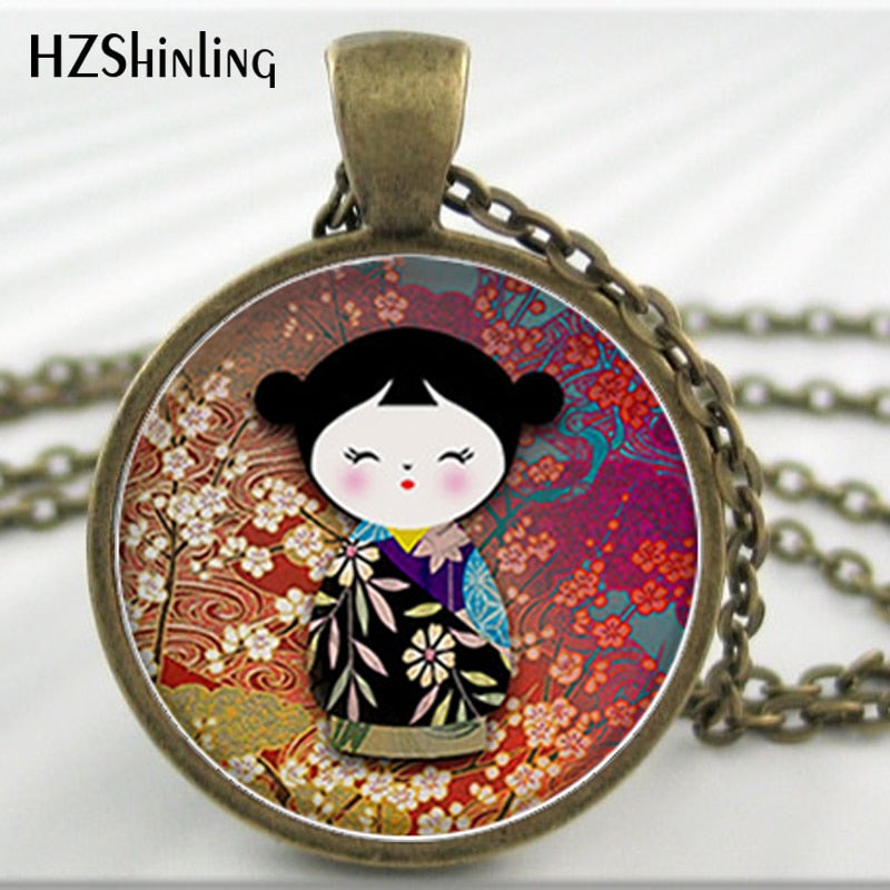 HZ--A293 Kokeshi Doll pendant, Kokeshi necklace charm Japanese jewelry, burgundy wine ethnic doll charm HZ1
