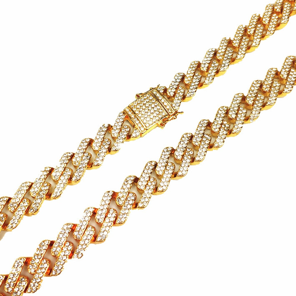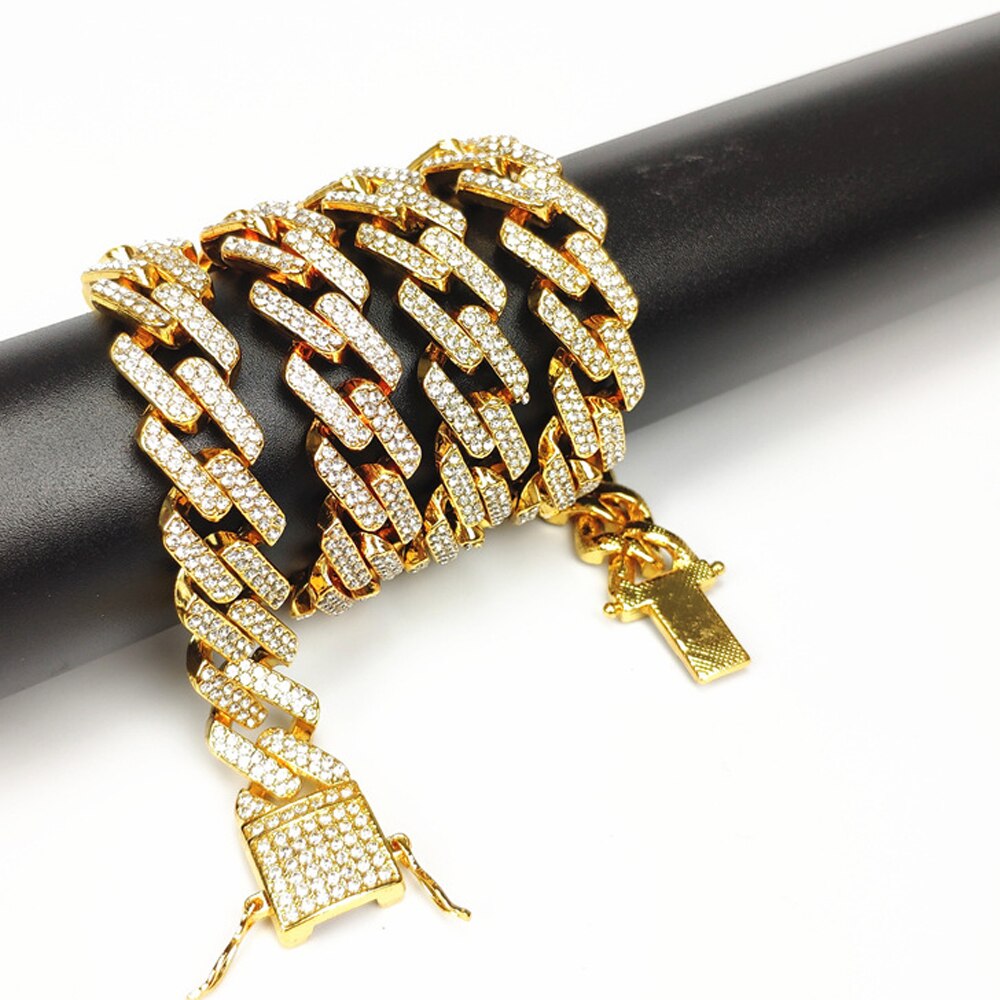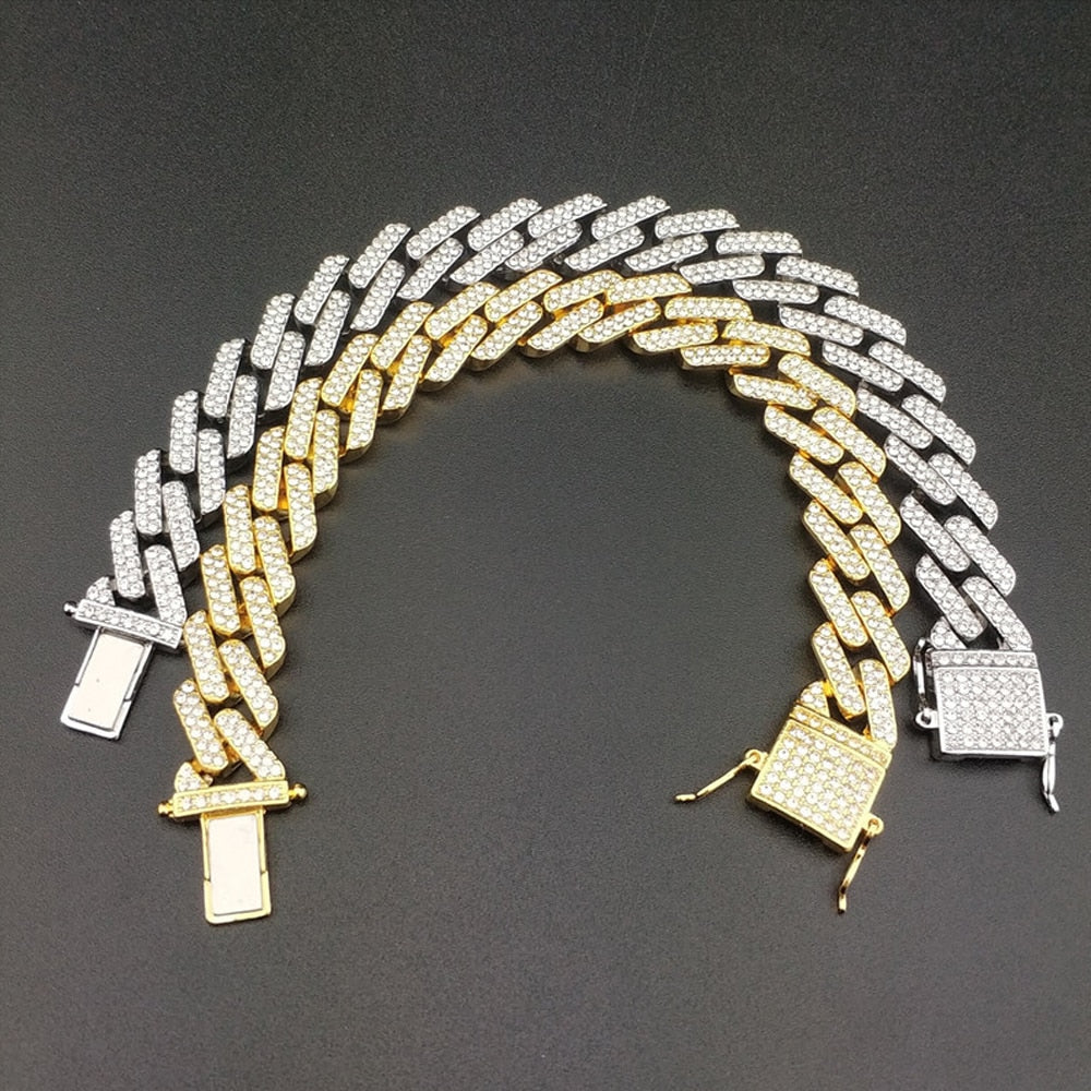 Iced Out 15mm Miami Cuban Link Chains 8"16"18"20"24" Custom Necklace Bracelet Rhinestone Bling Hip Hop For Men Jewelry Necklaces