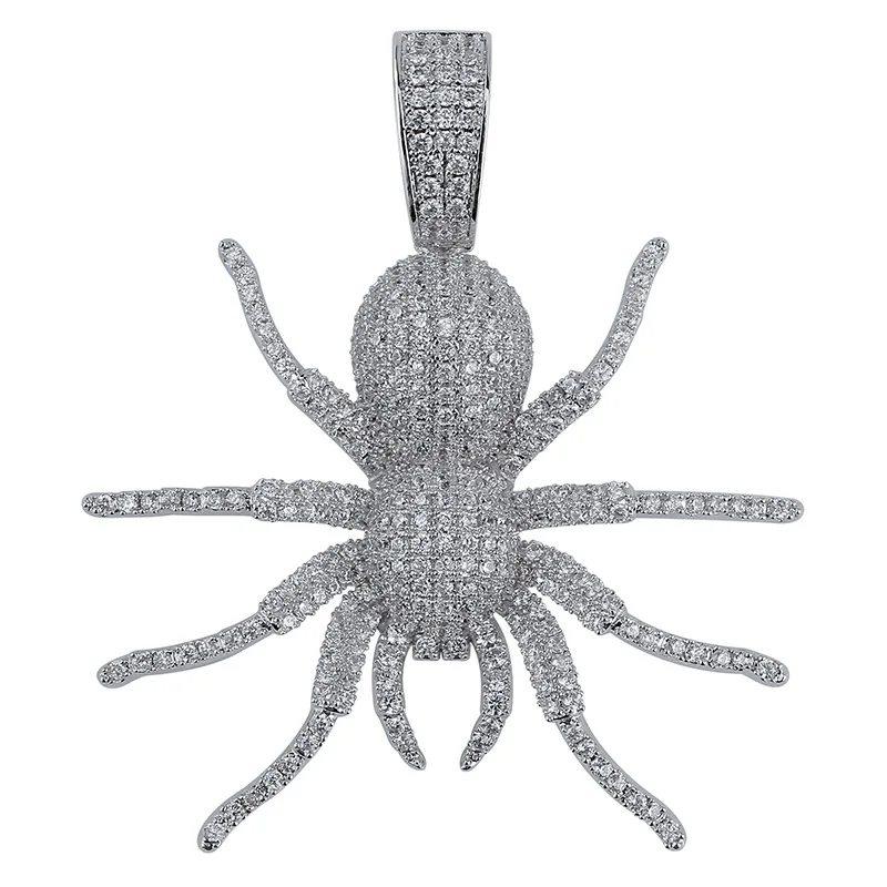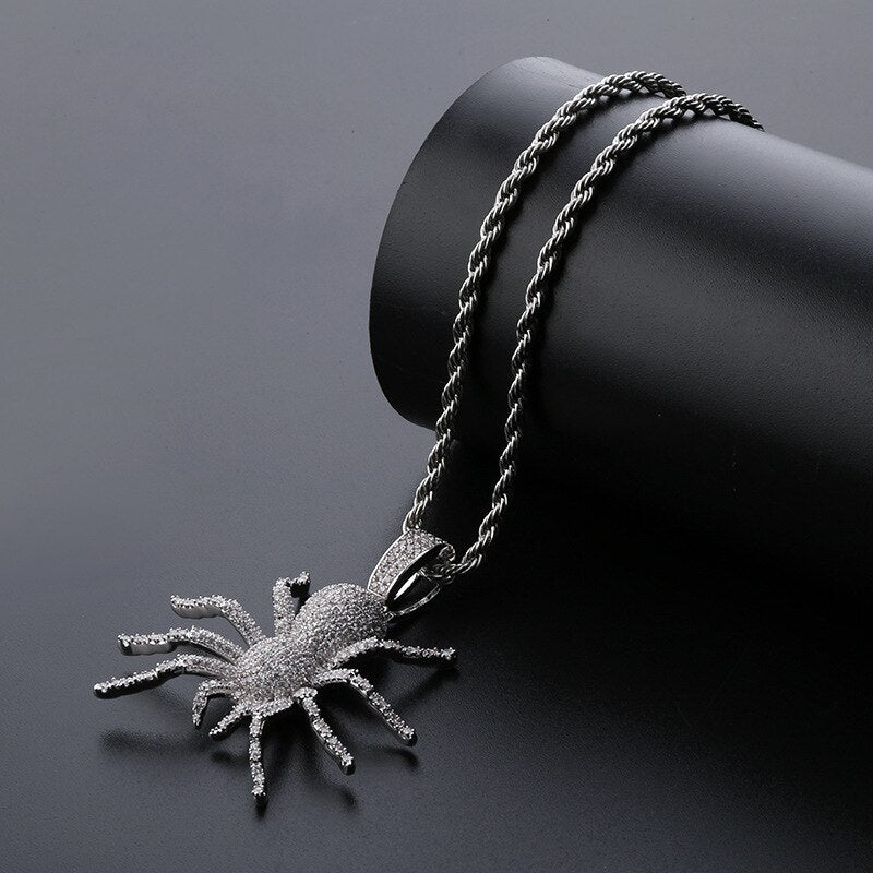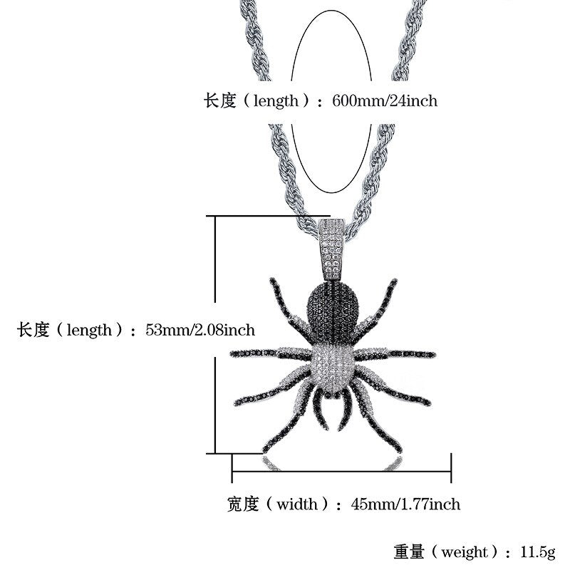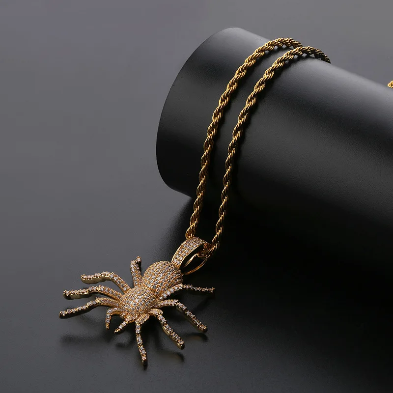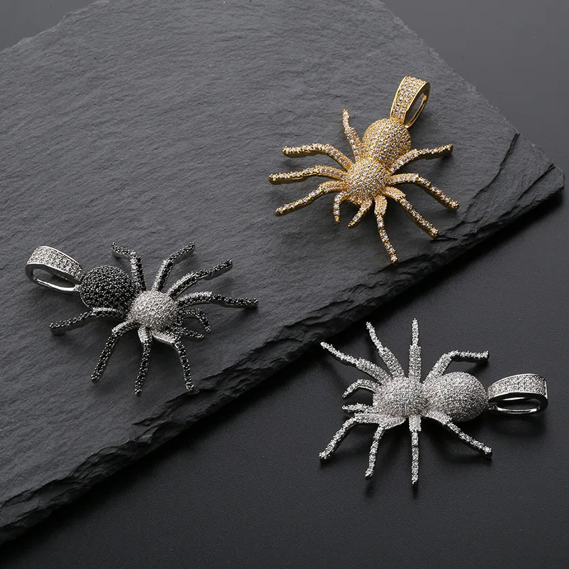 Iced Out Full Cubic Zirconia Spider Pendant Necklace Hip Hop Black Widow Jewelry For Men Women Party Gift