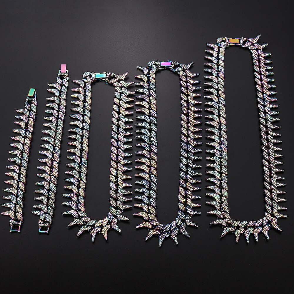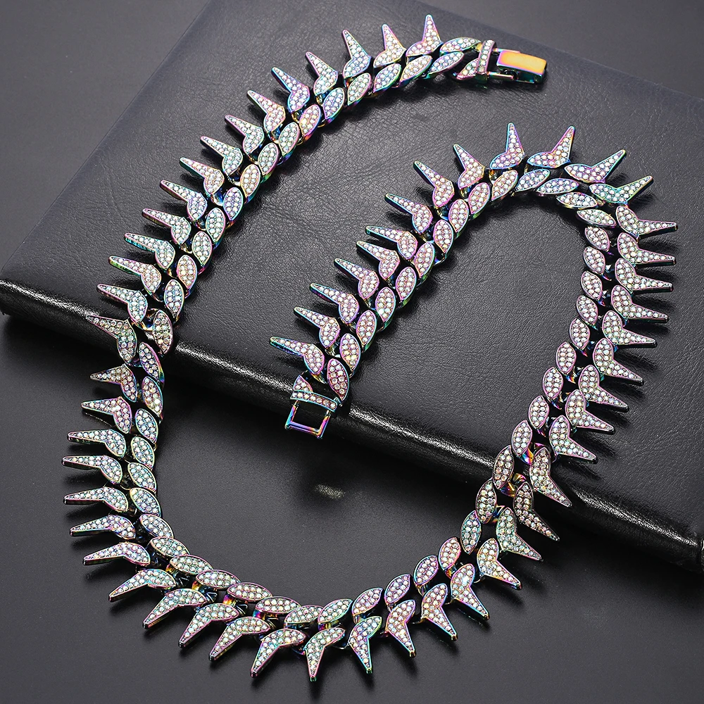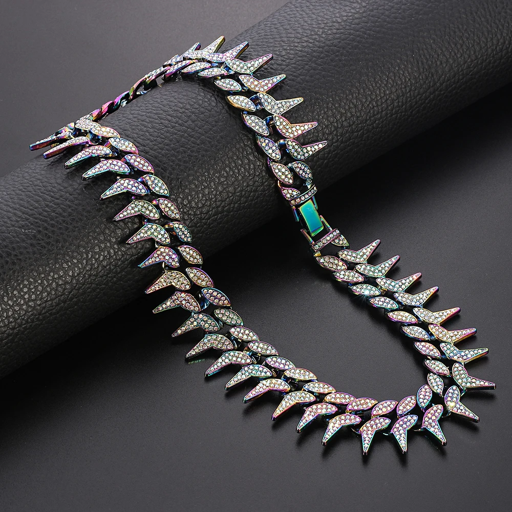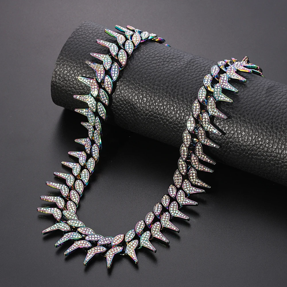 Iced Out Paved Rhinestone Cuba Spine Chain Jewelry CZ Bling Rapper Necklace for Men HipHop Choker Man Bar Nightclub Accessories