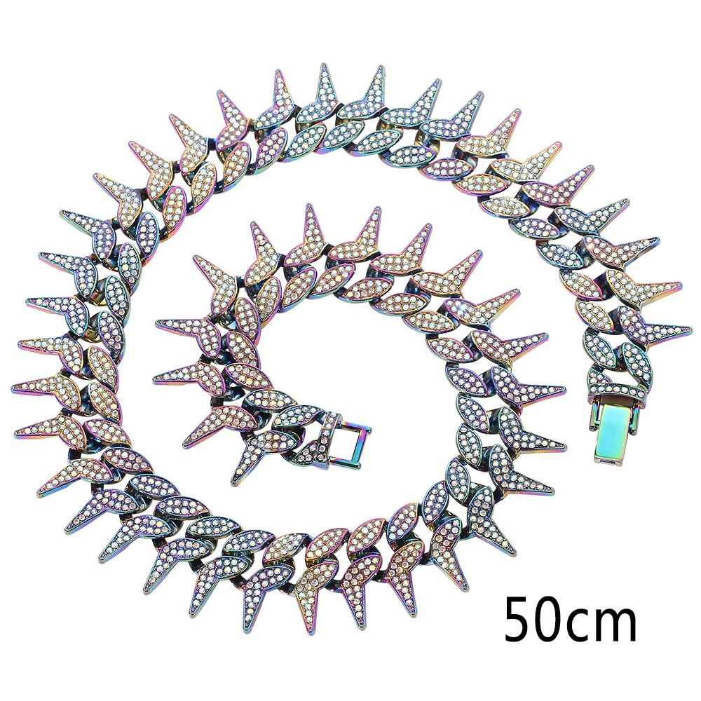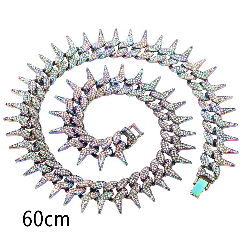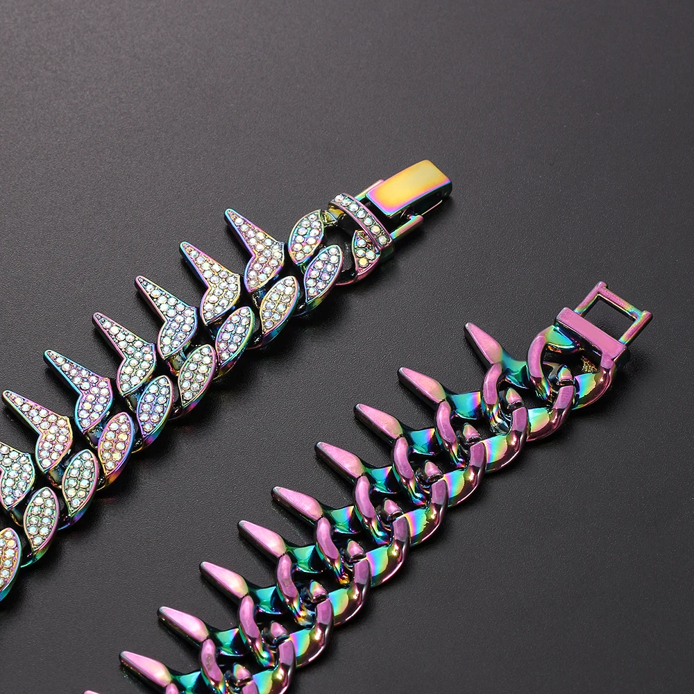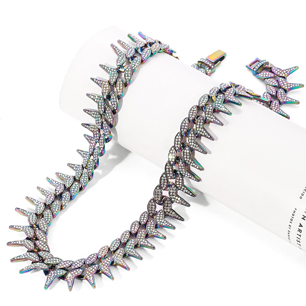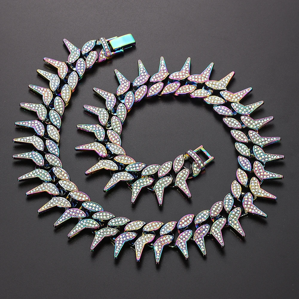 Iced Out Paved Rhinestone Cuba Spine Chain Jewelry CZ Bling Rapper Necklace for Men HipHop Choker Man Bar Nightclub Accessories