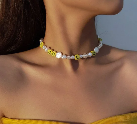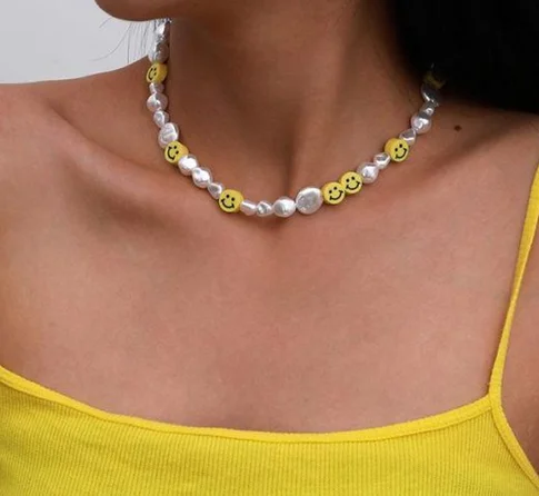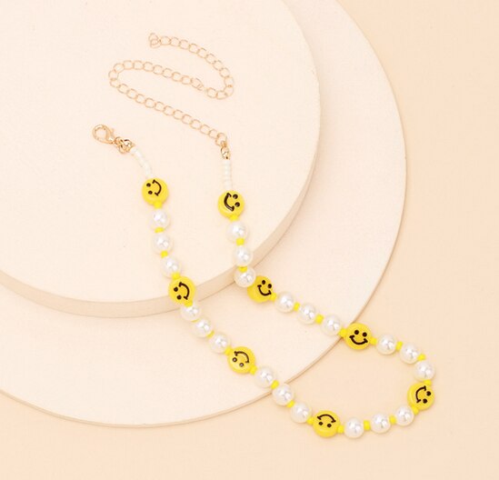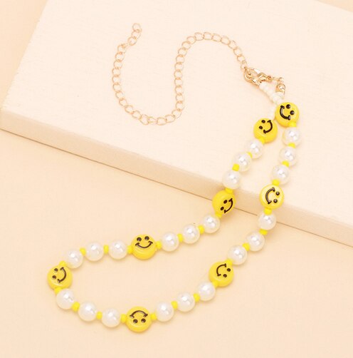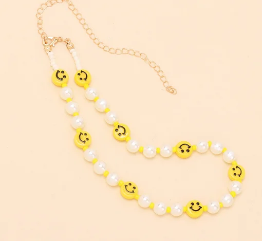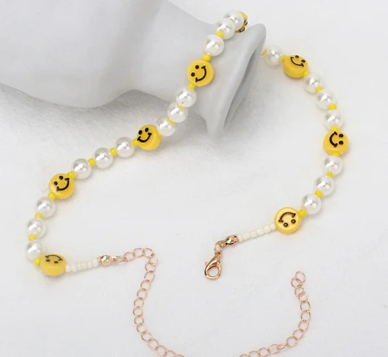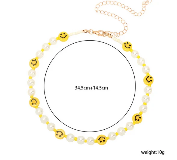 Imitation Pearl Choker Women Smile Face Beads Necklace Jewelry Collar Femme