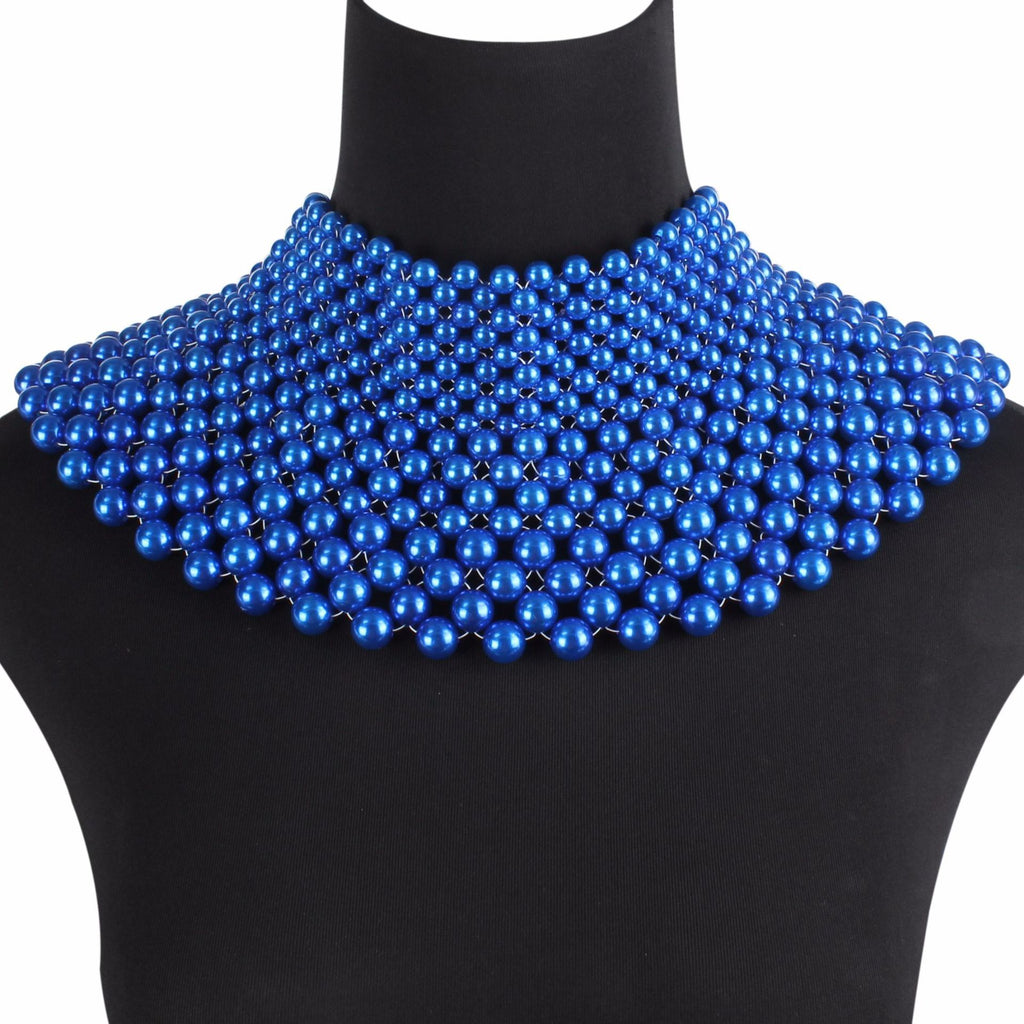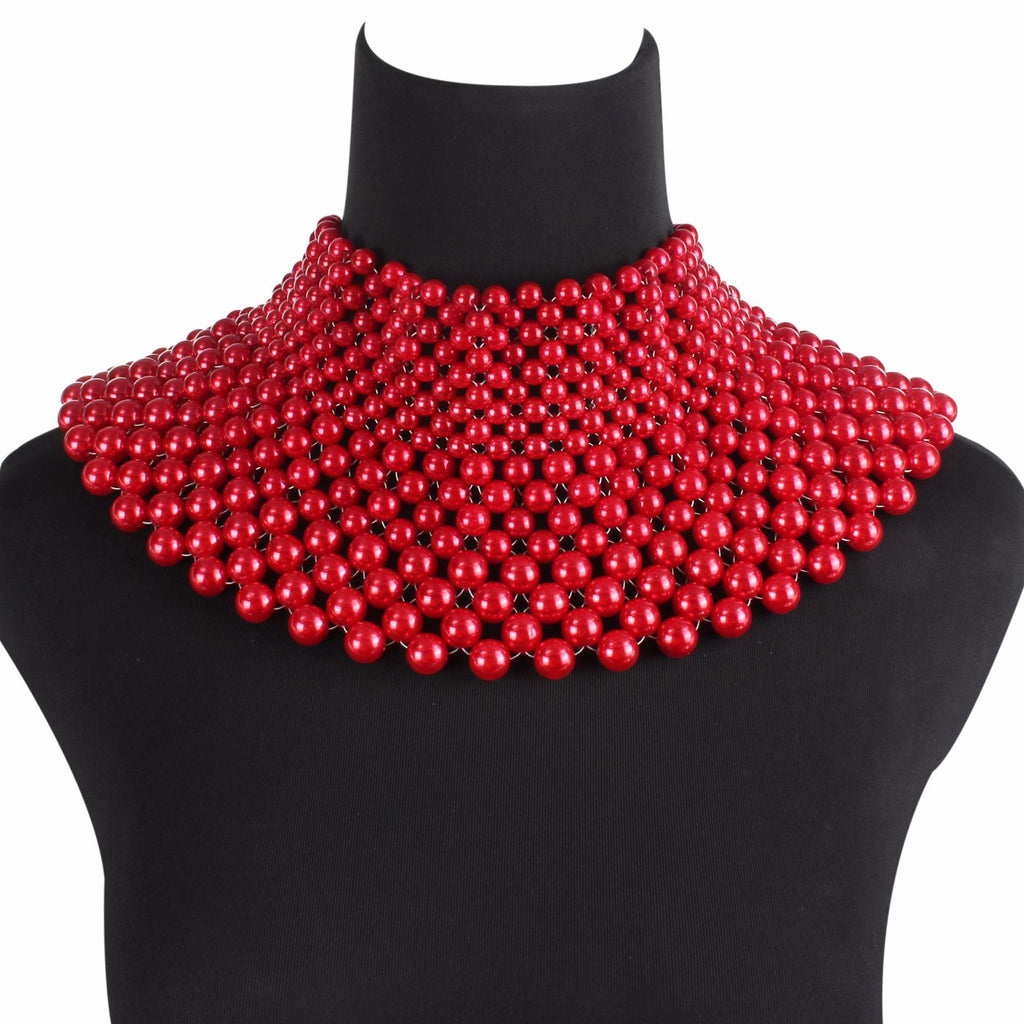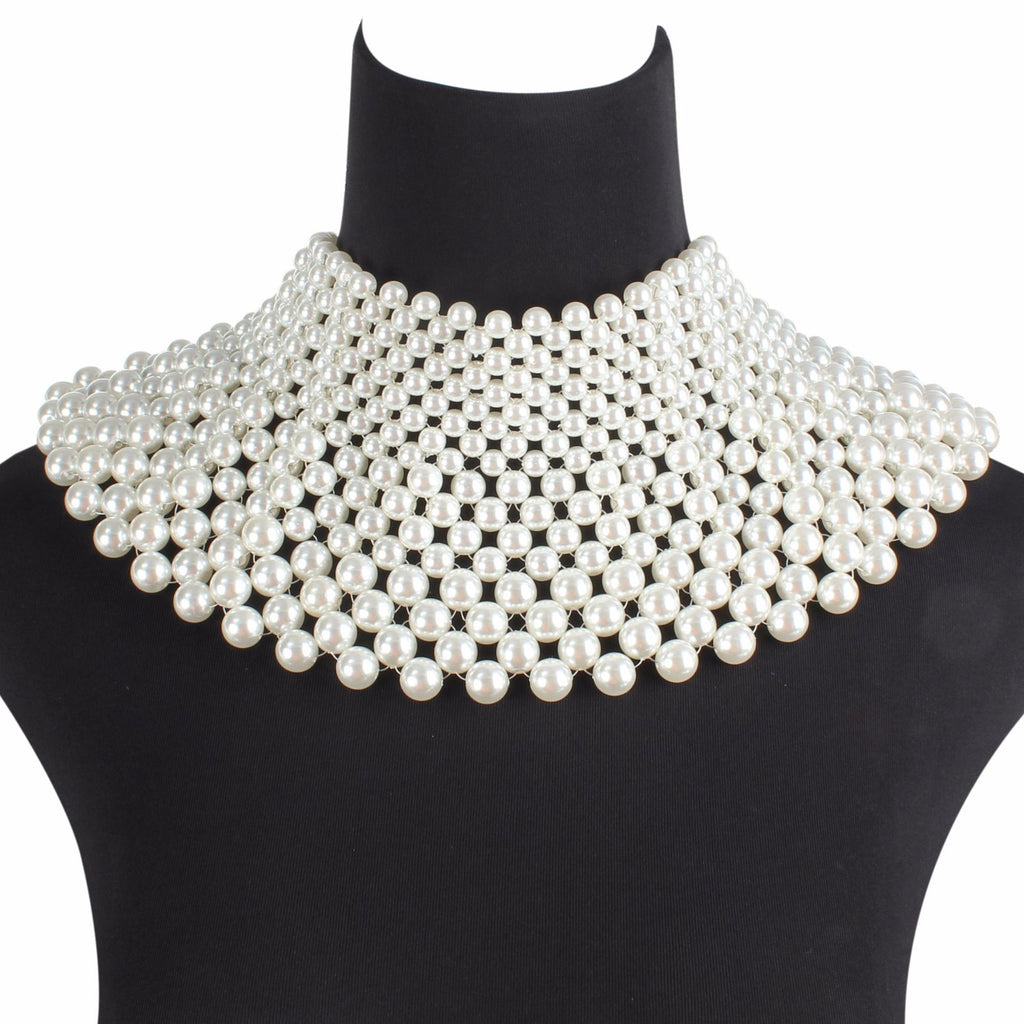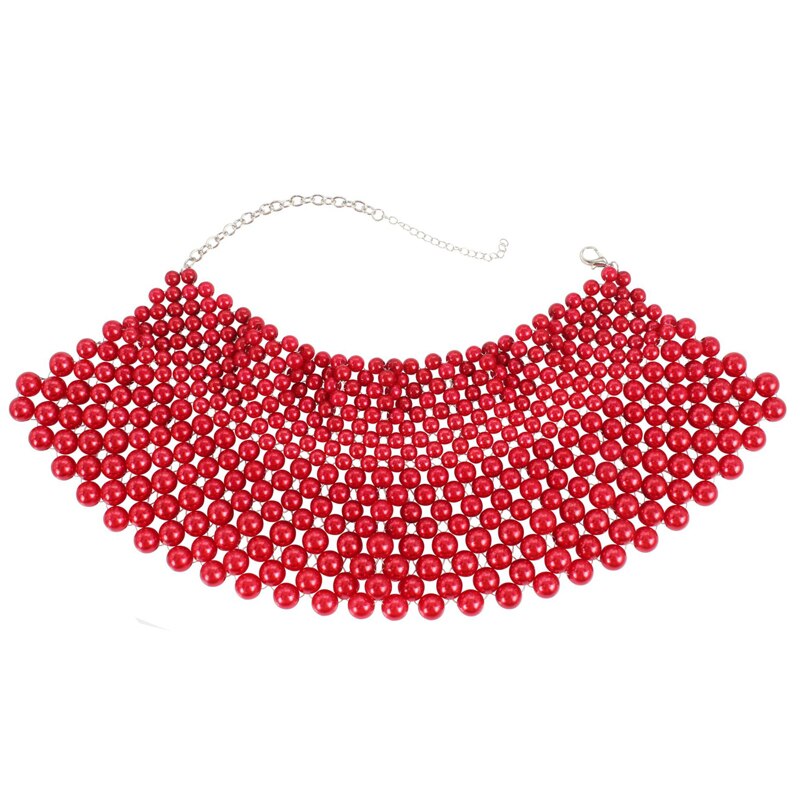 Imitation Pearls Chunky Statement Necklace for Women Bib Collar Choker Handmade Beaded Necklace Maxi Jewelry For Wedding Party