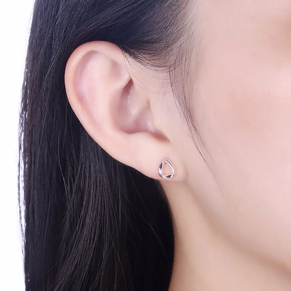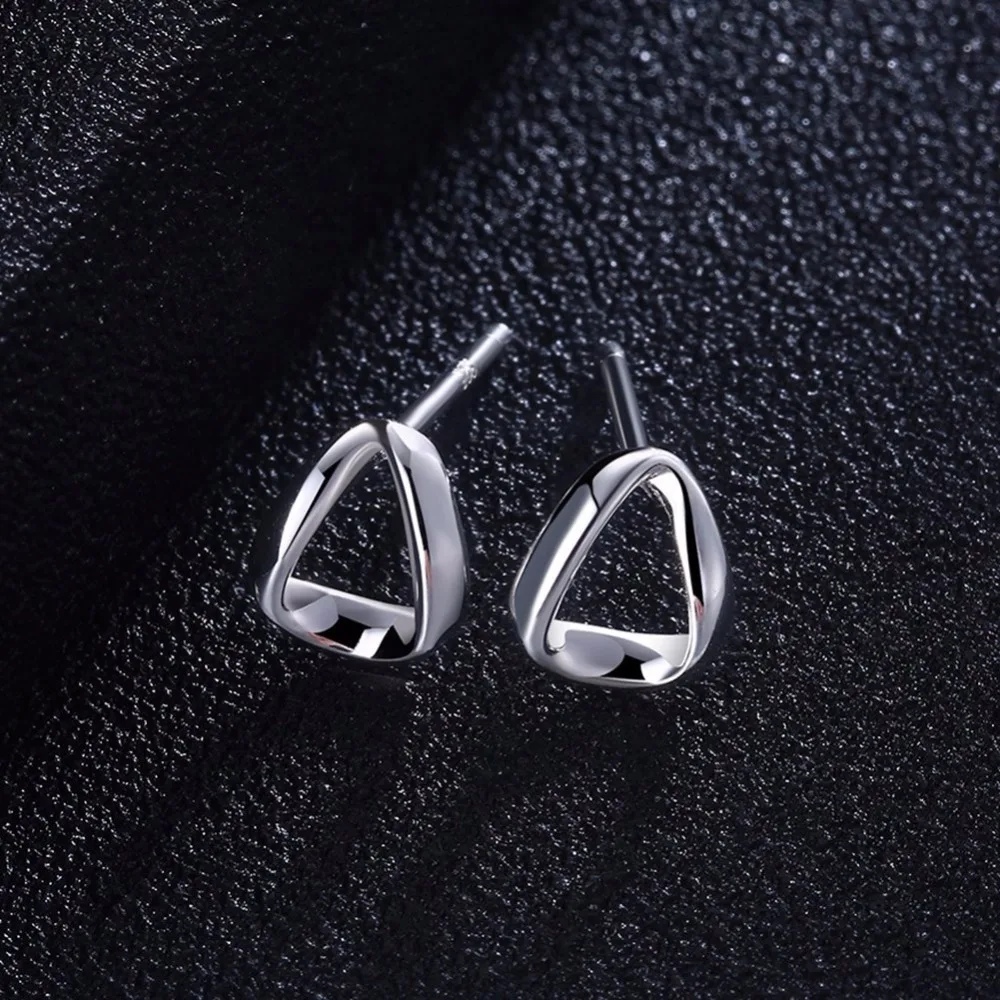 2020 New Elegant Korea Style S925 Sterling Silver Stud Earrings Geometric Triangle Rhodium Plated Fine Jewelry for Women