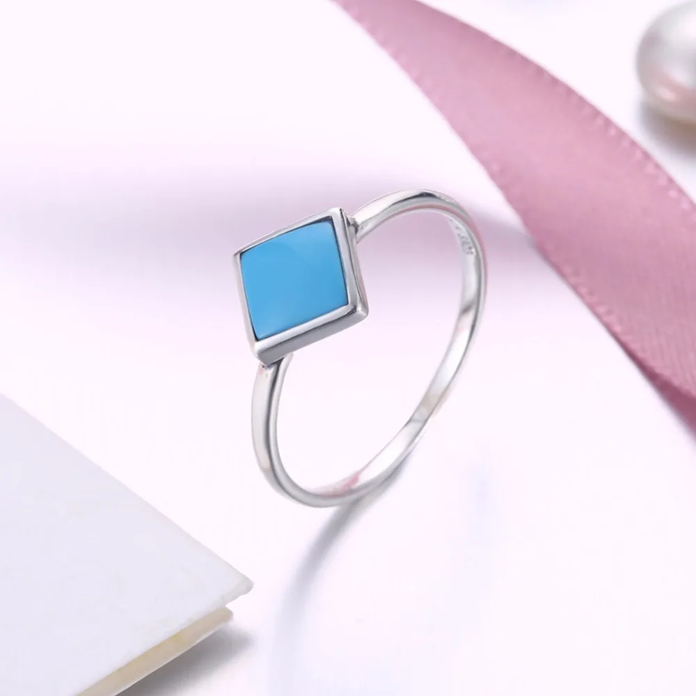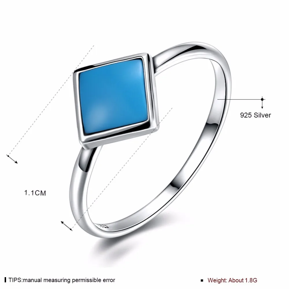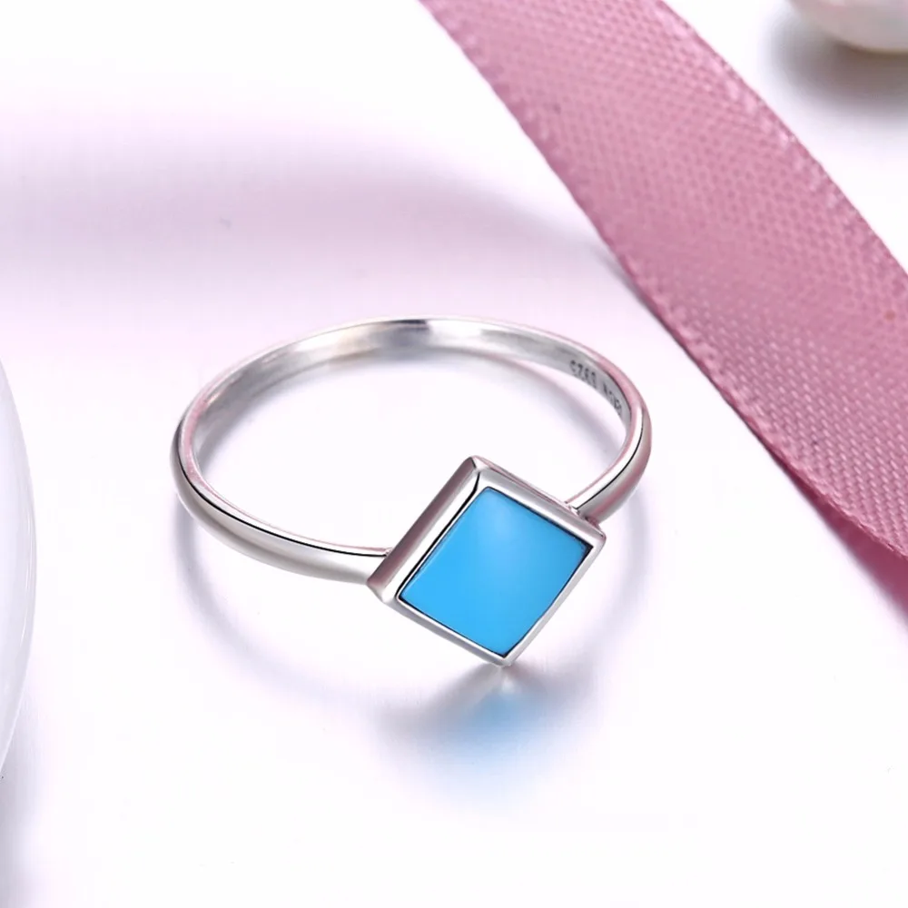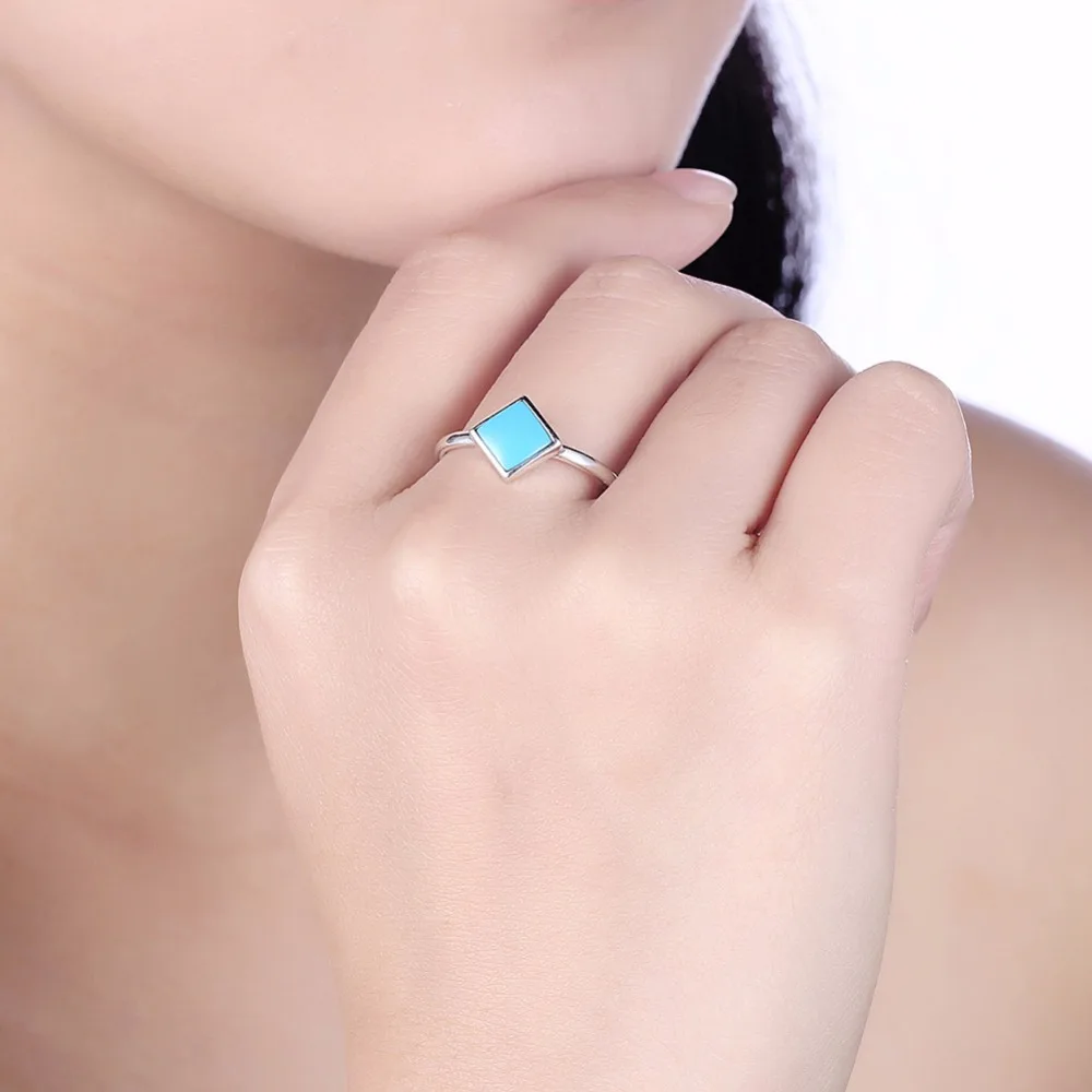 Delicate Thai Silver Ring Square Blue Turquoise Shape Finger Fine Jewelry S925 Sterling Gift For Women Wedding Gift
