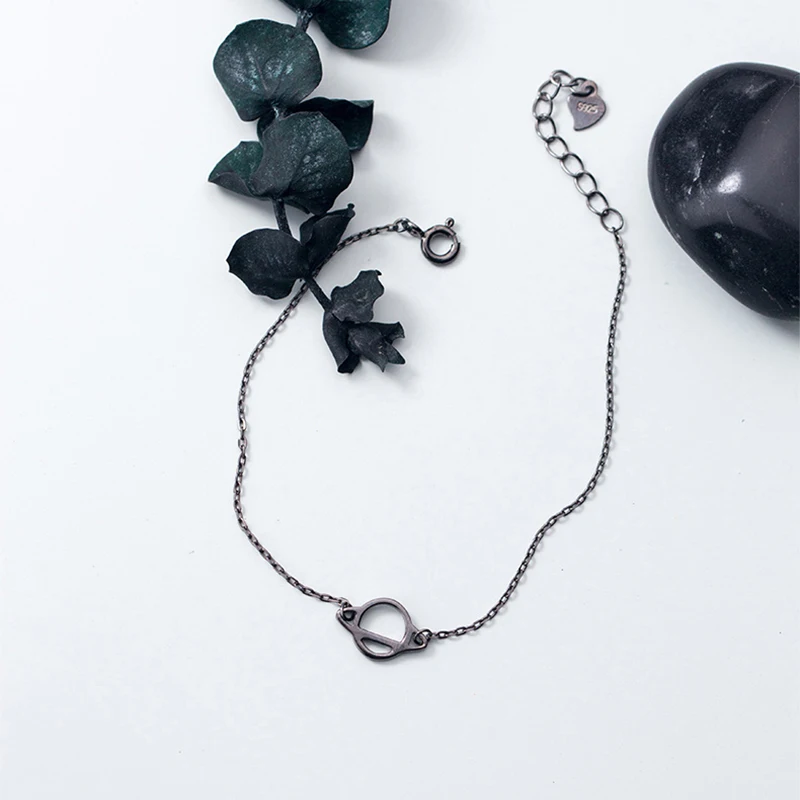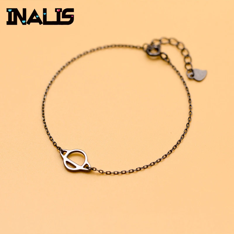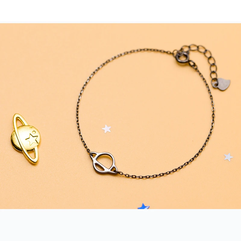 New Delicate Fine Jewelry S925 Sterling Silver Cosmic Planet Shape Accessories with Link Chain Bracelet Plated Gun Black