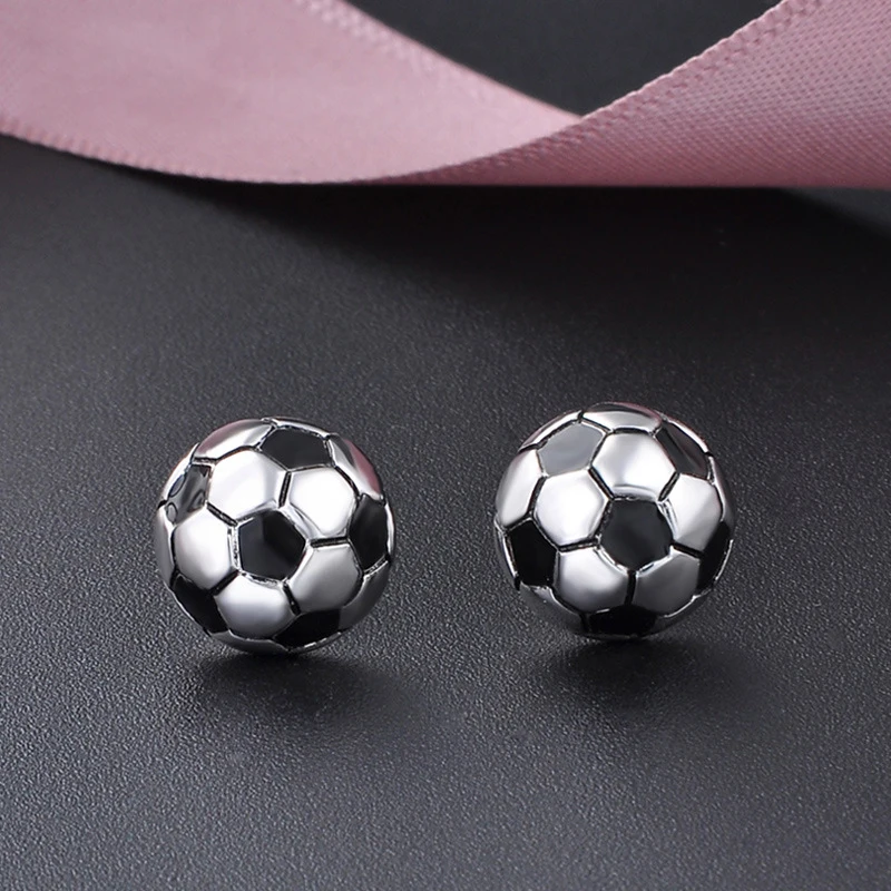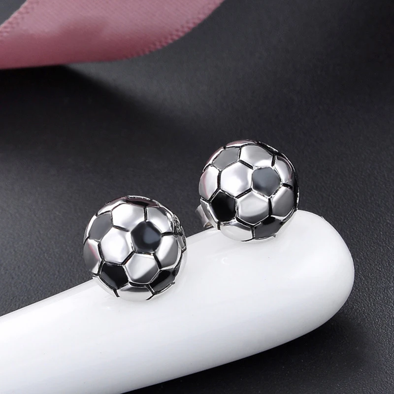 New Fashion Ball Stud Earrings S925 Sterling Silver Football Shape Unique Fine Jewelry for Women Soccer Party Bijoux