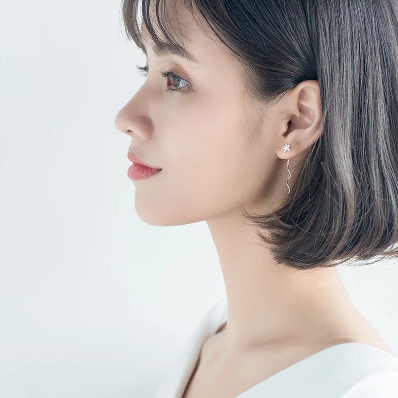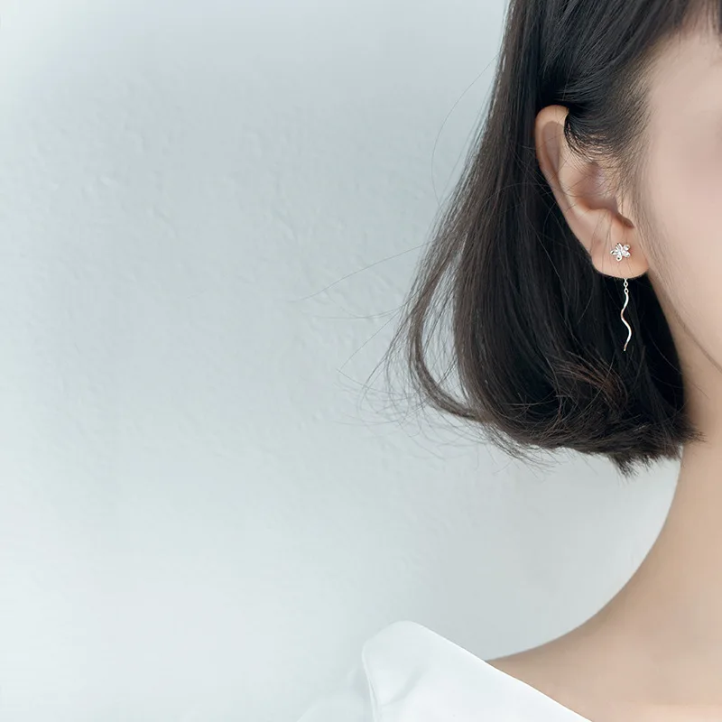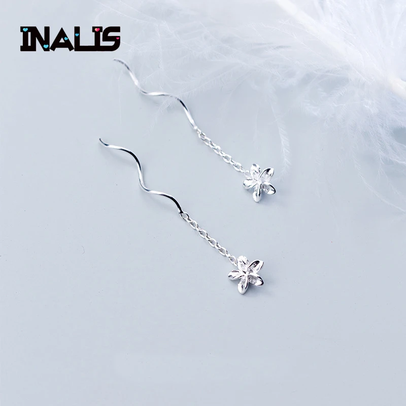 New High Quality Simple Spiral Chain Ear Line S925 Sterling Silver Flower Dangle Fashion Drop Earrings Jewelry Wholesale