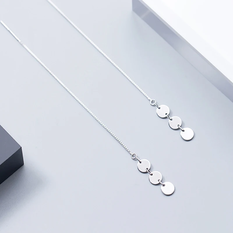 New Korean Trendy S925 Silver Long Chain Drop Earrings For Women Elegant Ear Line Round Dangle Boucle D'oreille Gift
