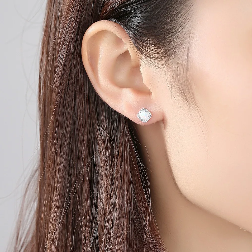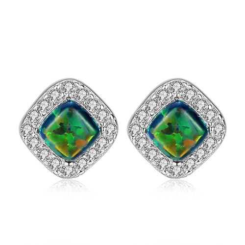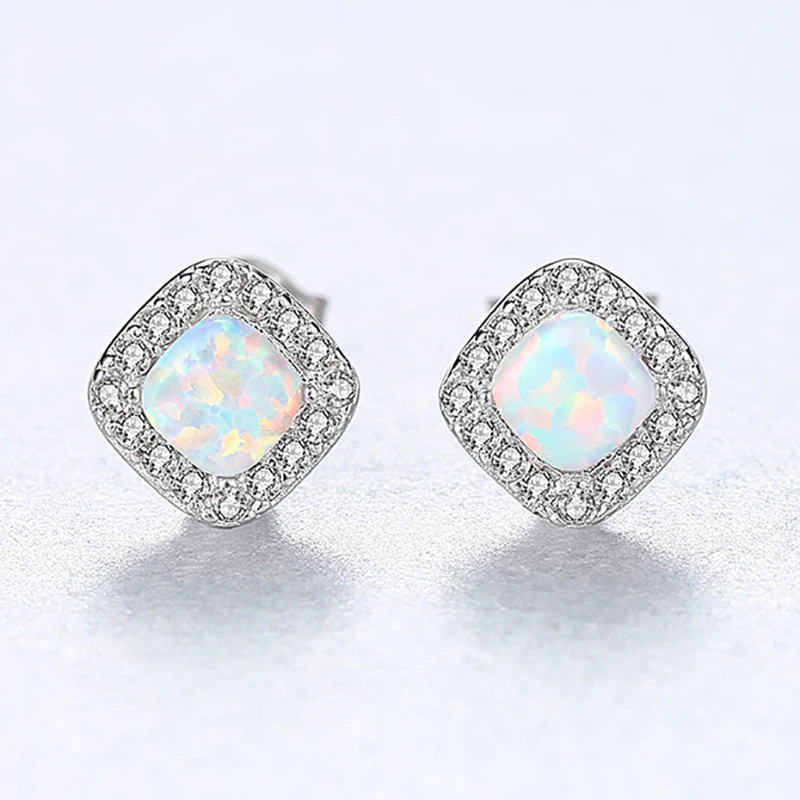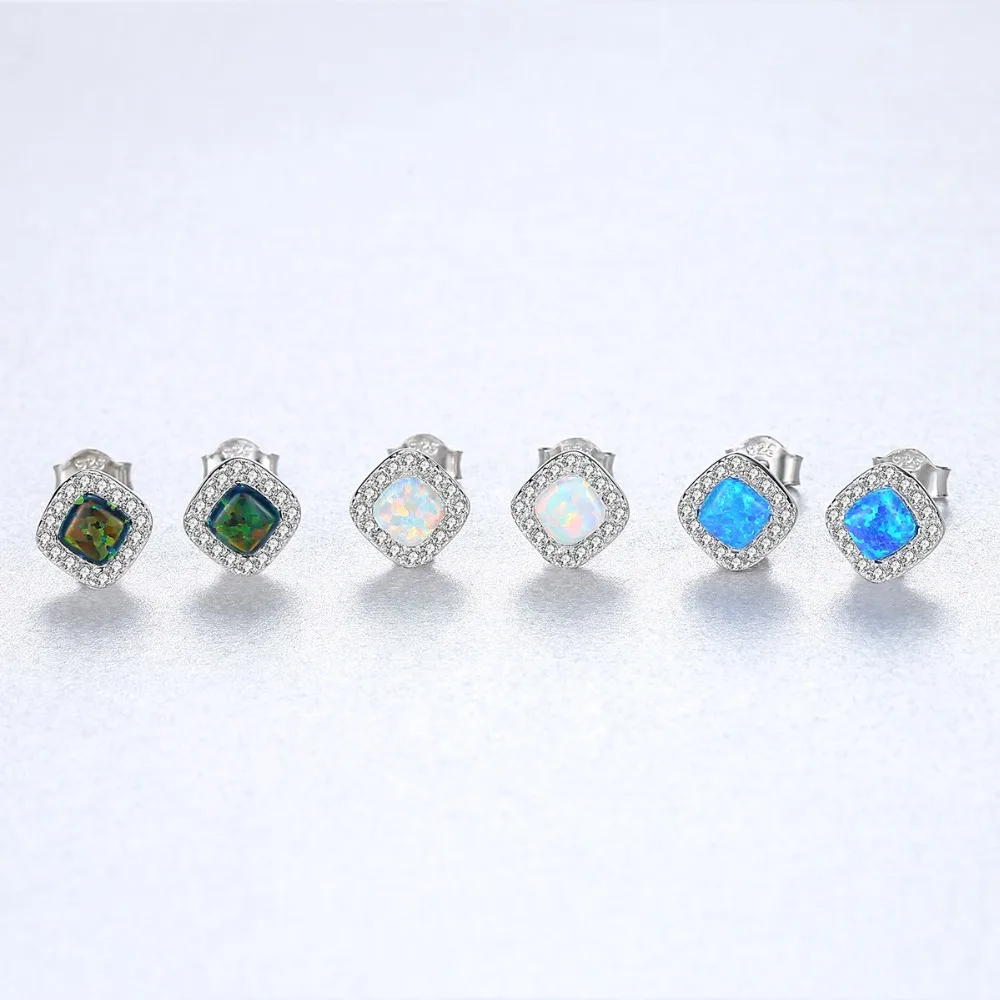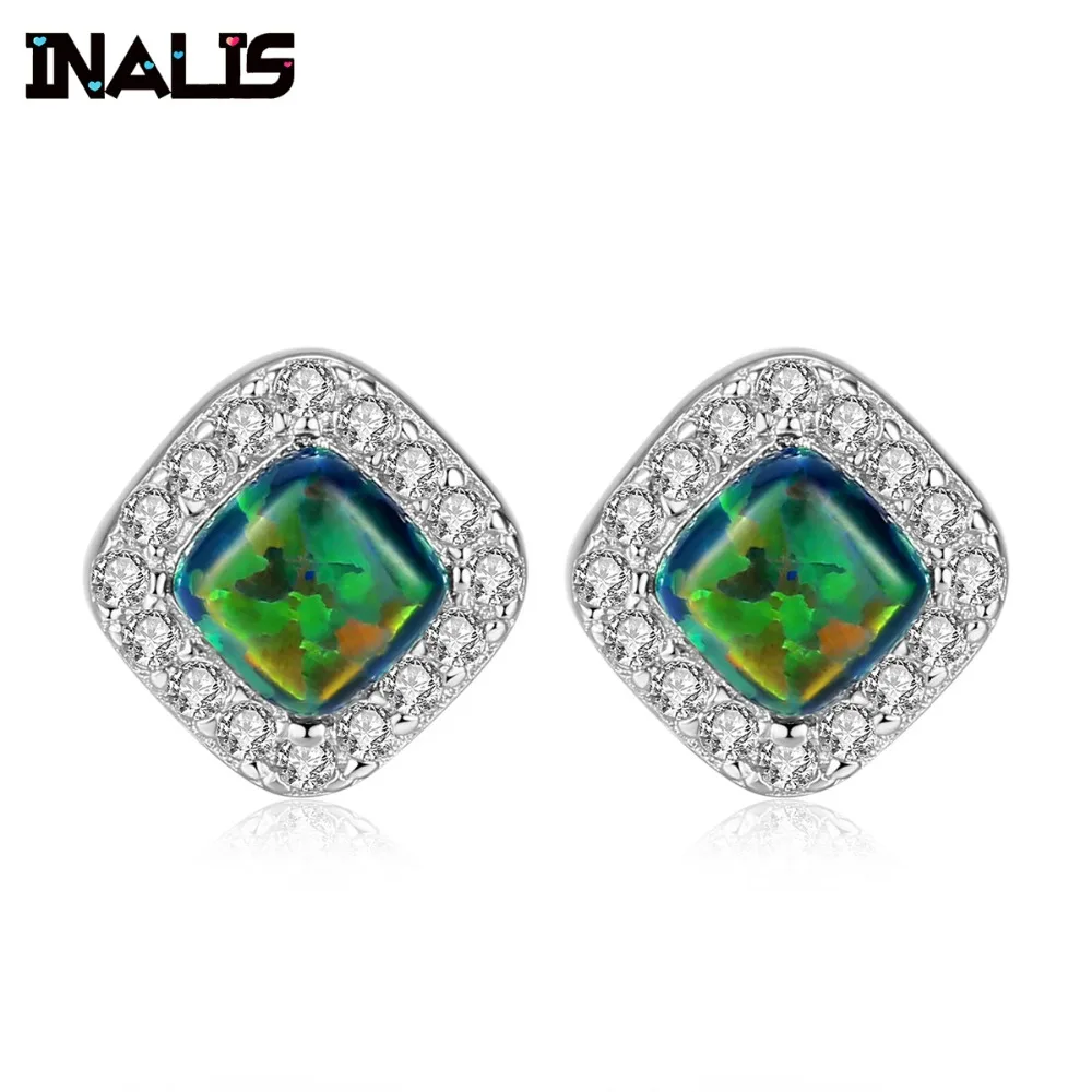 New Luxurious Stud Earrings S925 Sterling Silver Picro Paved CZ Stone with Multi Opal Brincos Fine Jewelry for Women