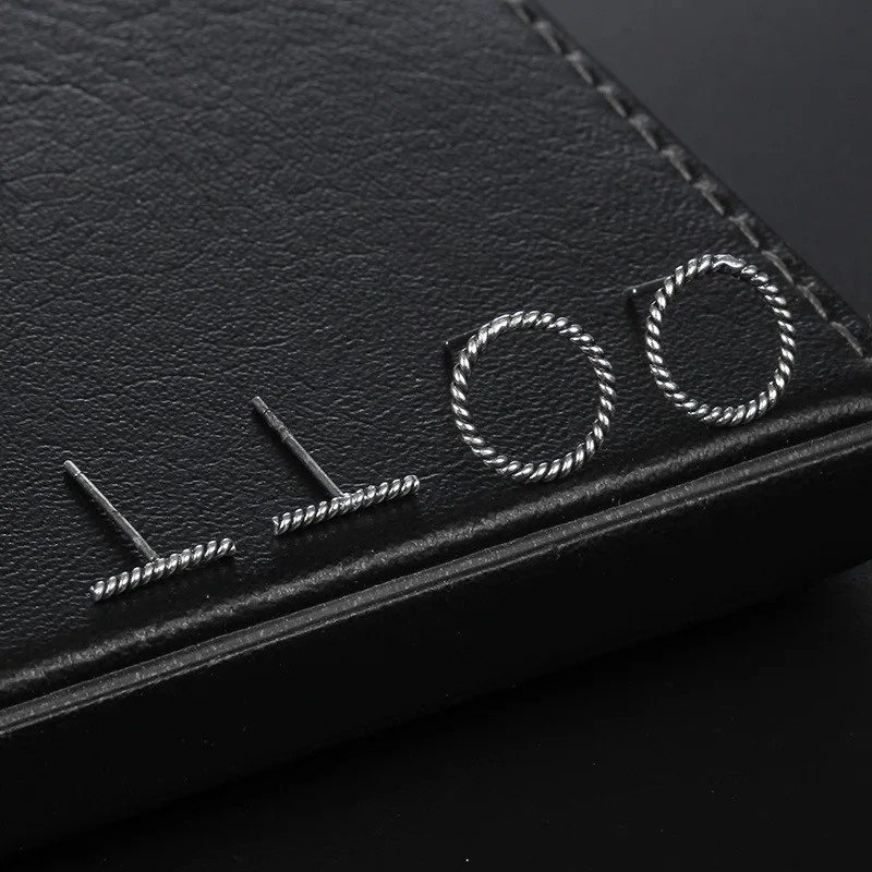 New Retro Round Circel with Strip Asymmetry Spiral Pattern Stud Earrings S925 Sterling Thai Silver Black Color Brincos