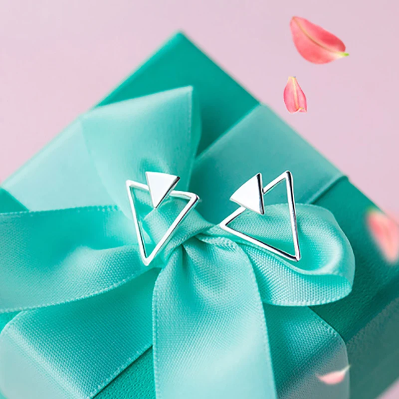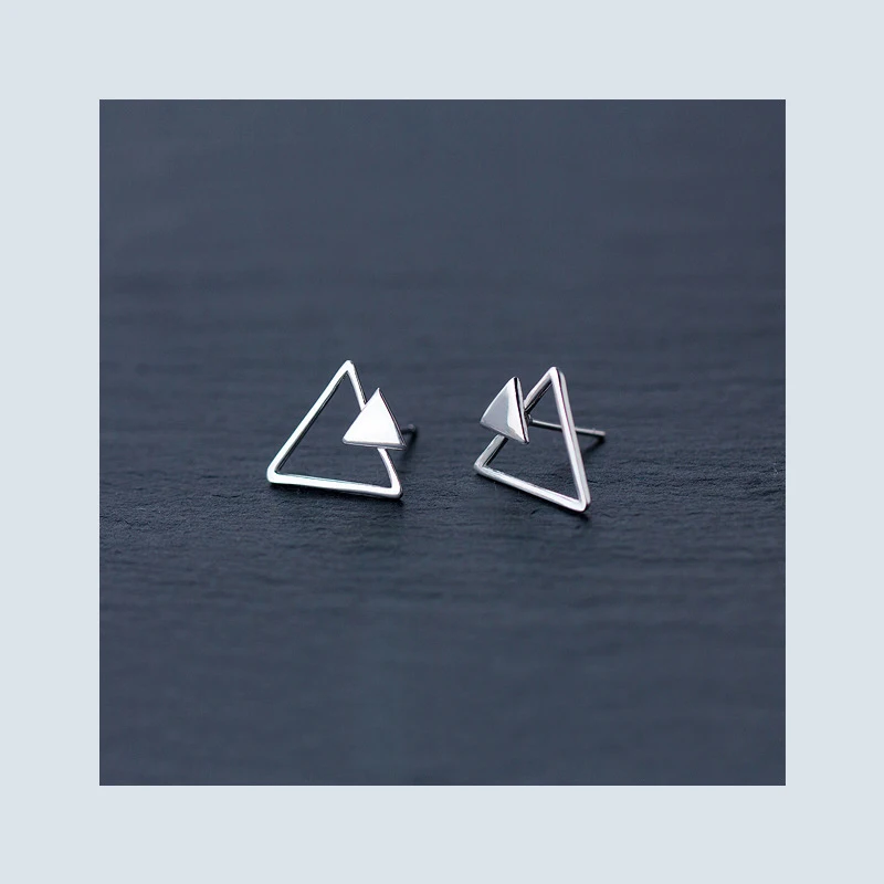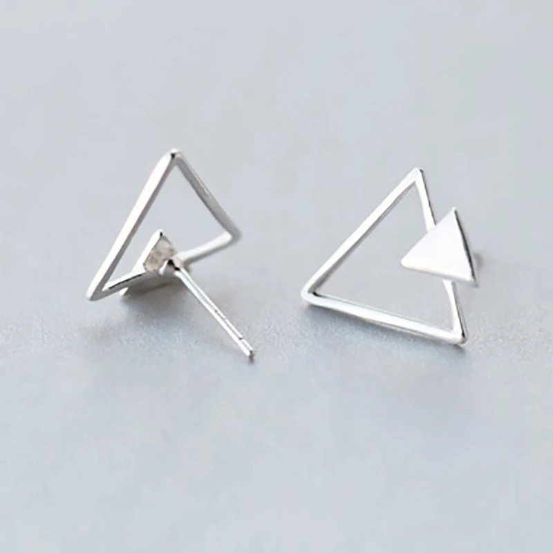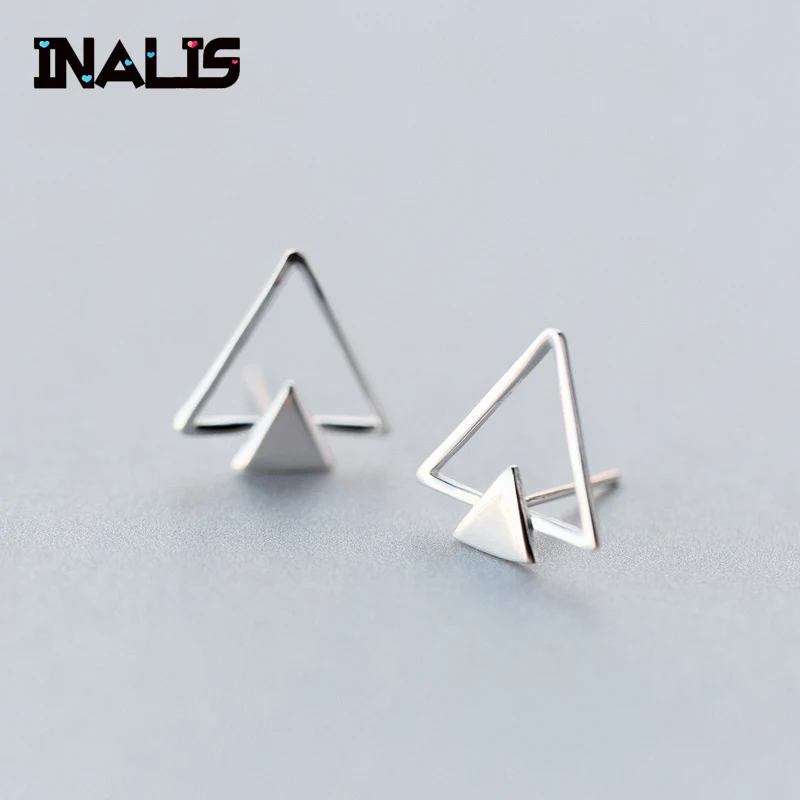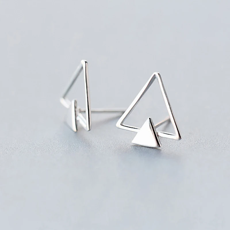 New Simple Design S925 Sterling Silver Double Triangle Geometric Stud Earrings for Women Fine Jewelry Brincos Bijoux