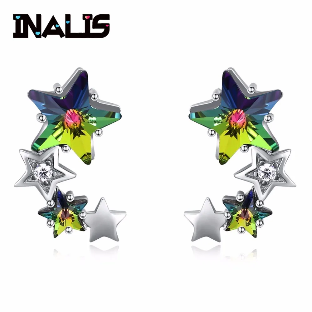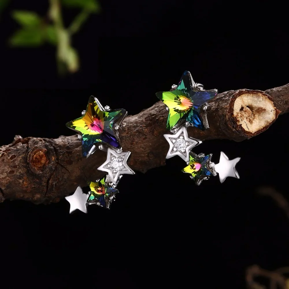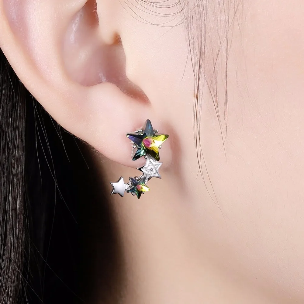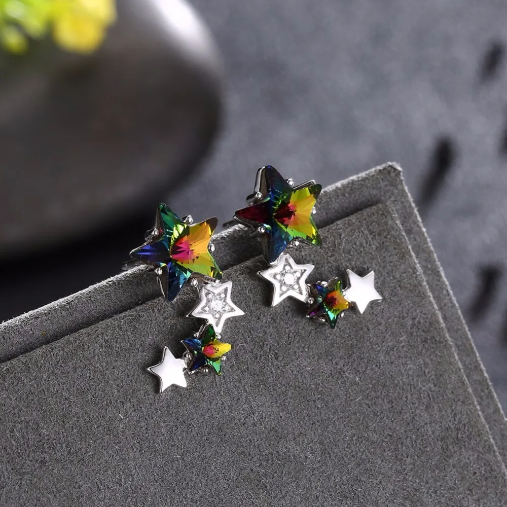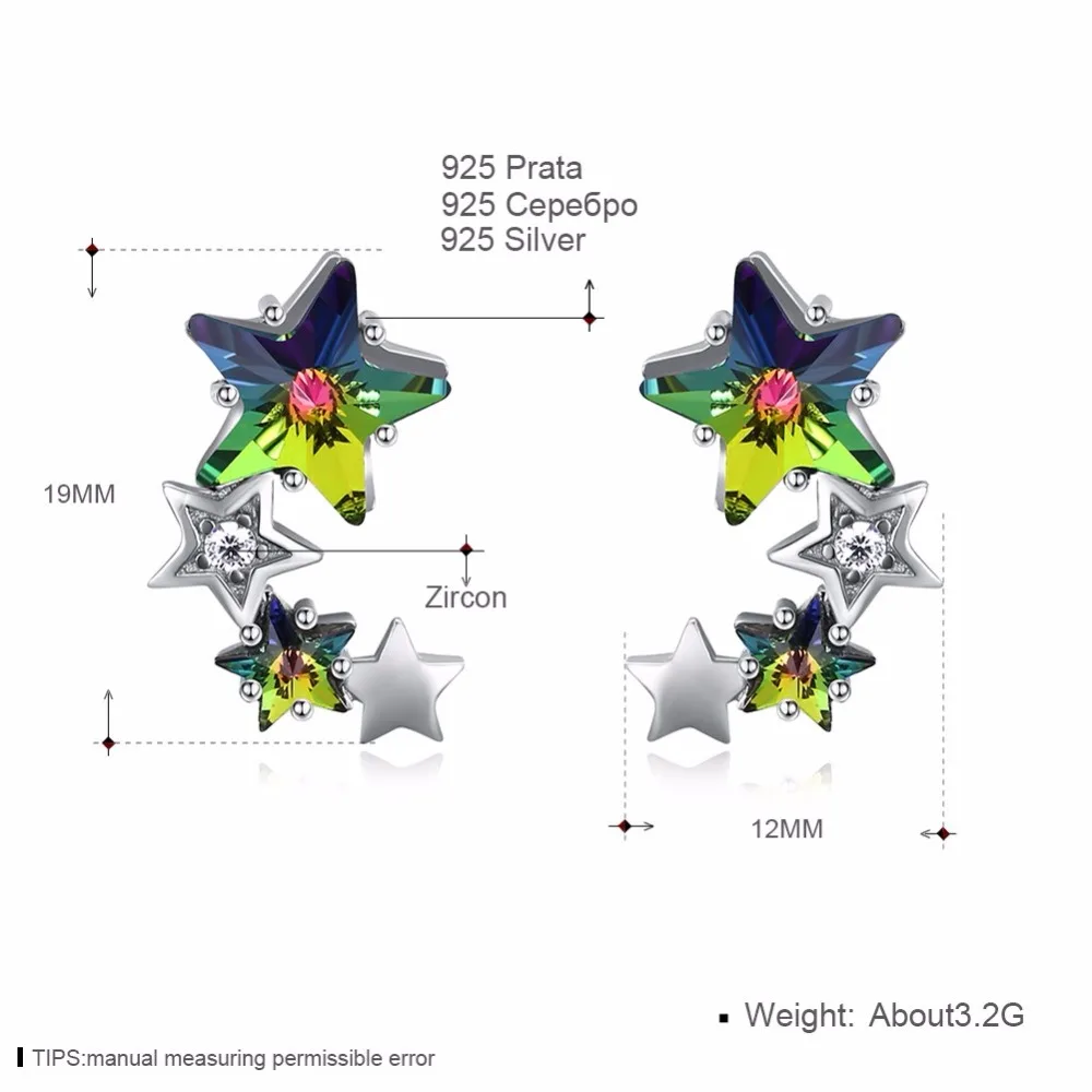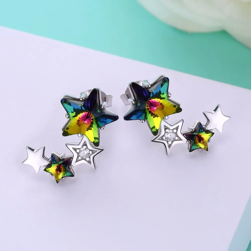 Newest Vintage Stud Earrings S925 Sterling Silver with Multi Crystal CZ Stone Star Shape Fine Jewelry for Women Brincos
