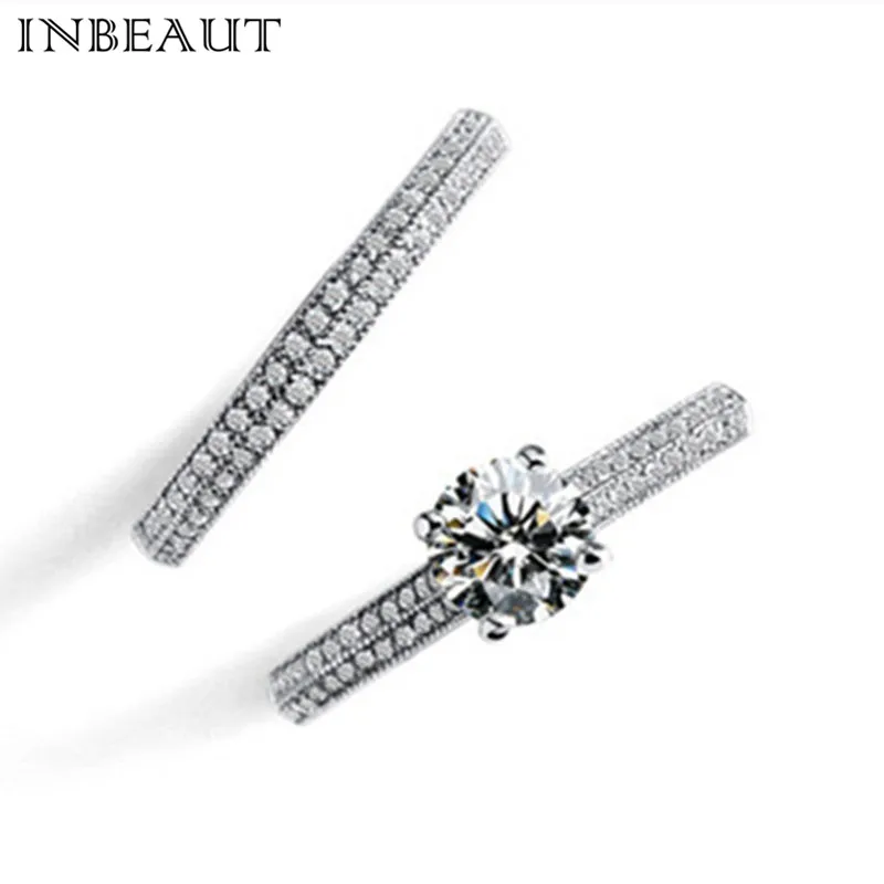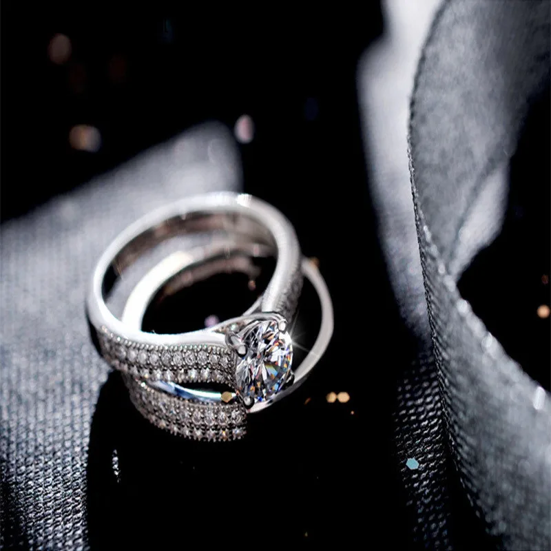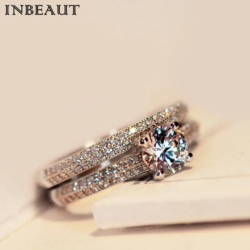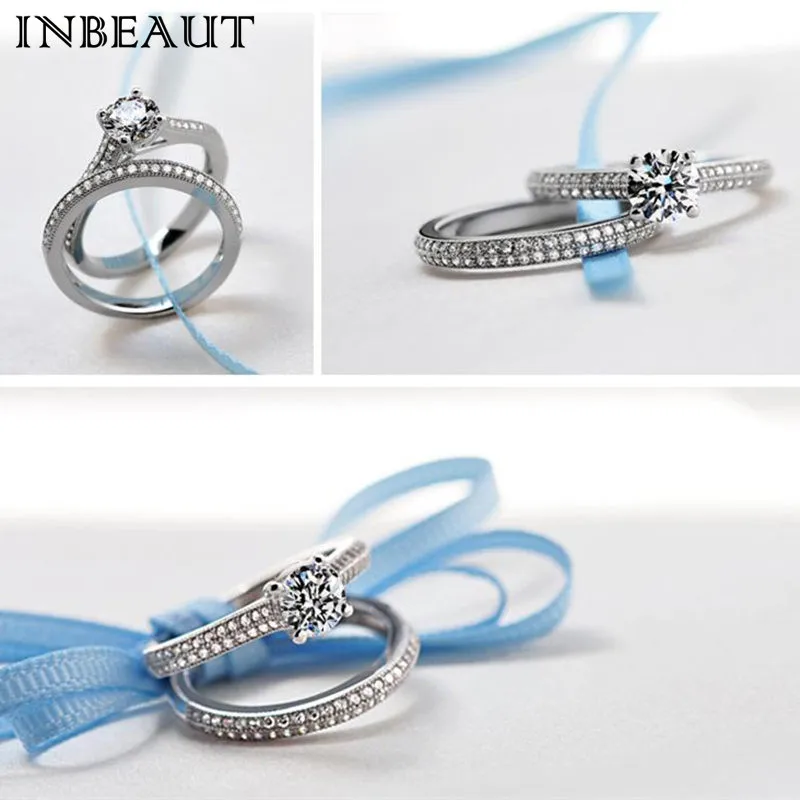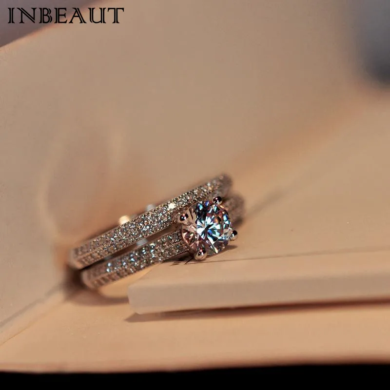 Women Wedding Ring Set Sparkling Perfect Round Cut Zircon Stone Rings Female Party Jewelry 2 Color Silver&Rose Gold