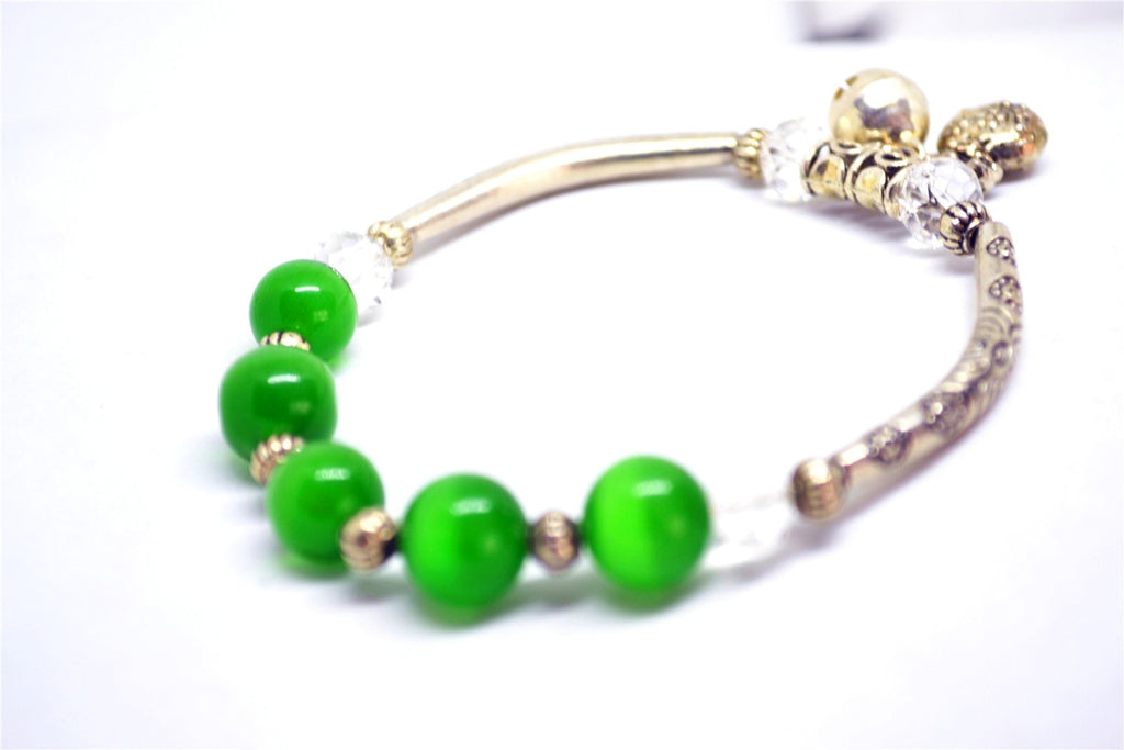 India Natural Green Jade Gemstone Stretchy Pink Crystal Burmese Jade Women Handmade Bracelet Accessories Gifts Wholesale