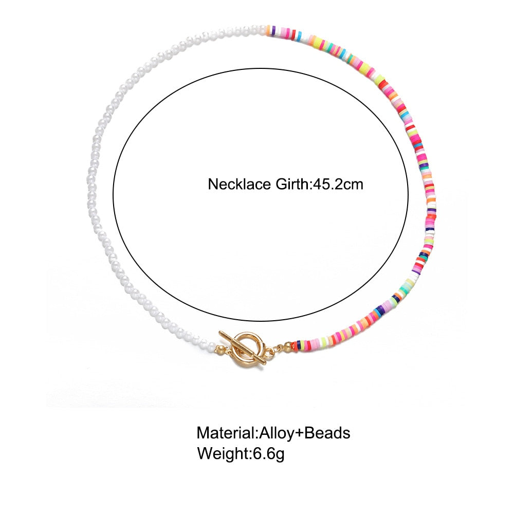 Information Pearl Beads Soft Pottery Splicing Chains T-Bar Choker Necklacet For Women Bohemian Style Trendy Jewelry Accessories