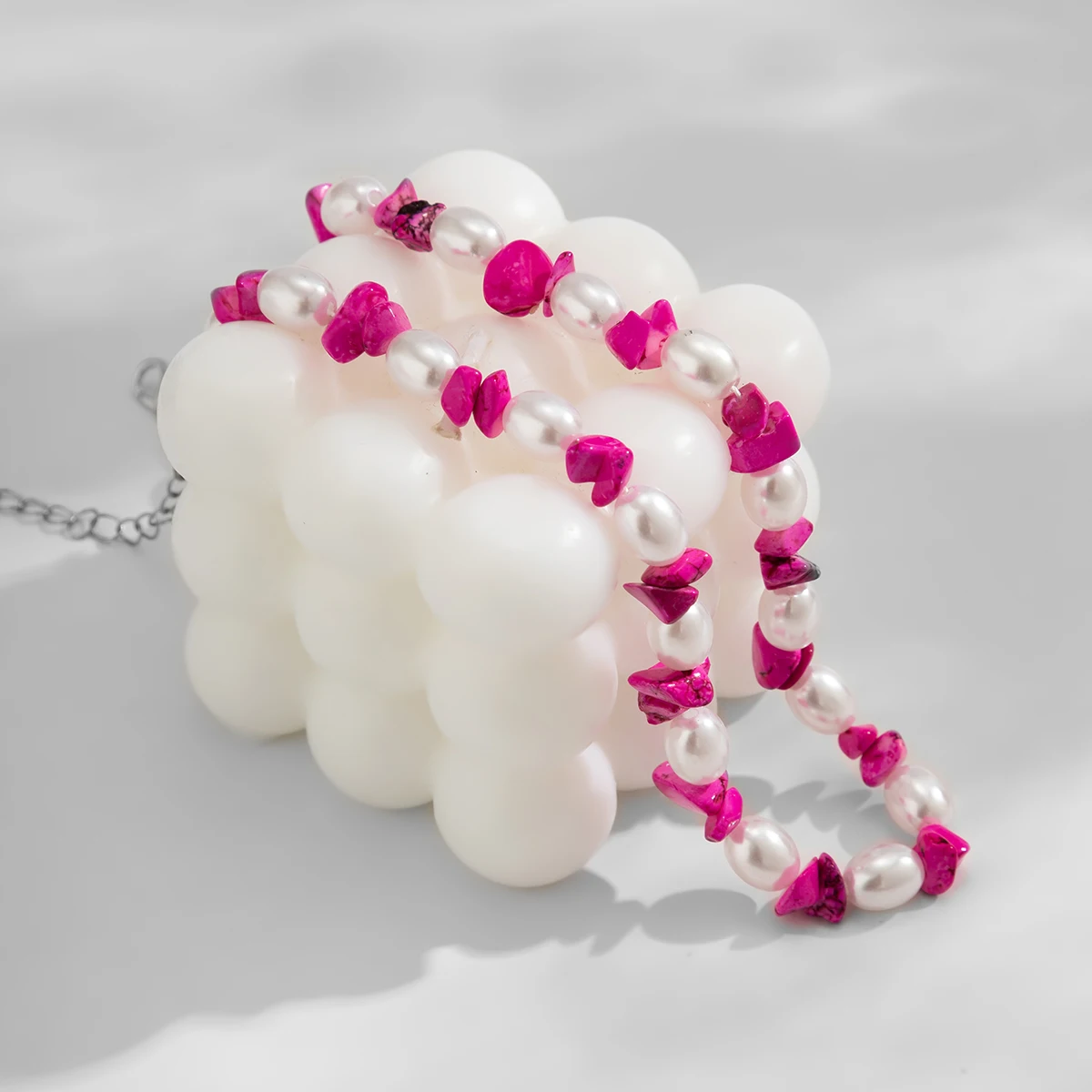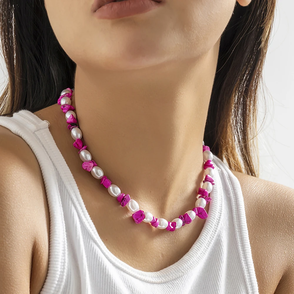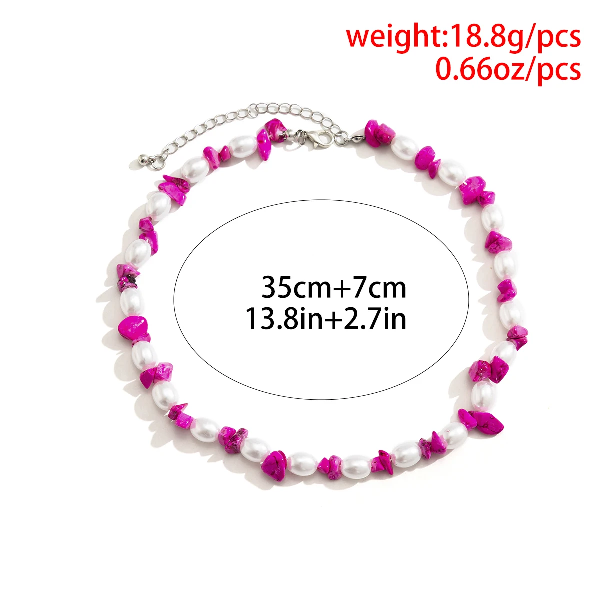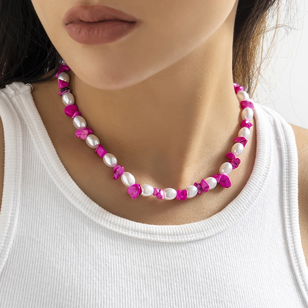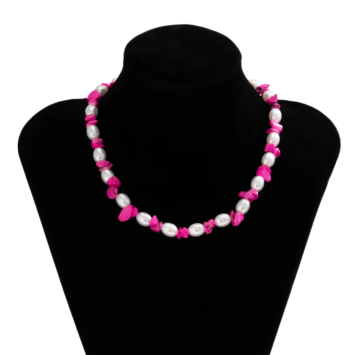 IngeSight.Z Bohemian Natural Irregular Rose Red Stone Oval Pearl Necklace For Women Kpop Personality Choker Necklace Party