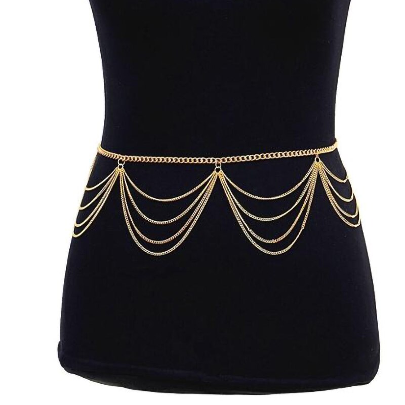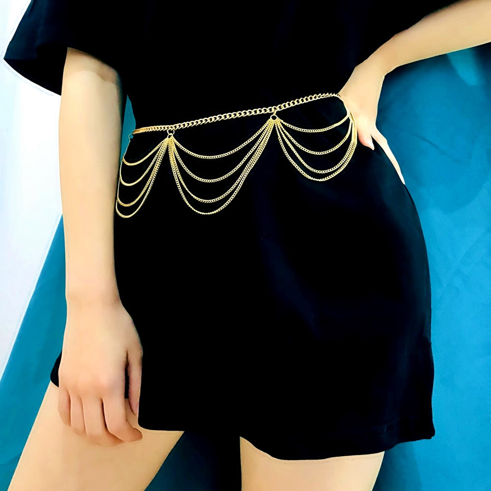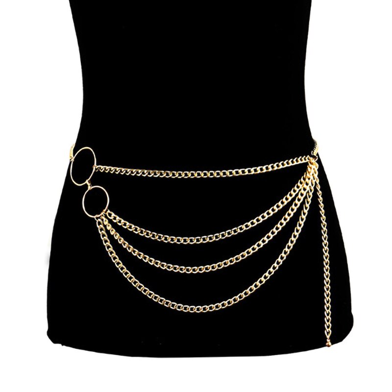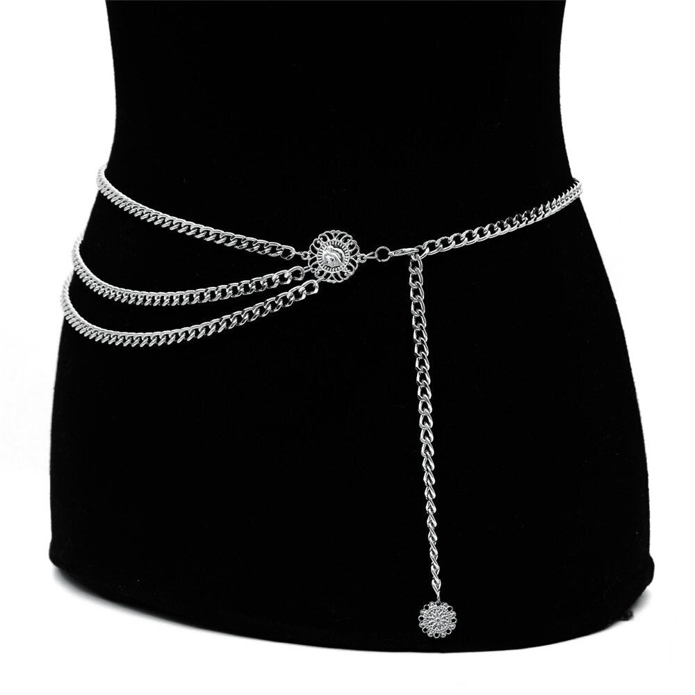 IngeSight.Z Bohemian Retro Style Multilayer Alloy Waist Chain Body Chain for Women Round Pendant Belly Chain Waist Chain Jewelry