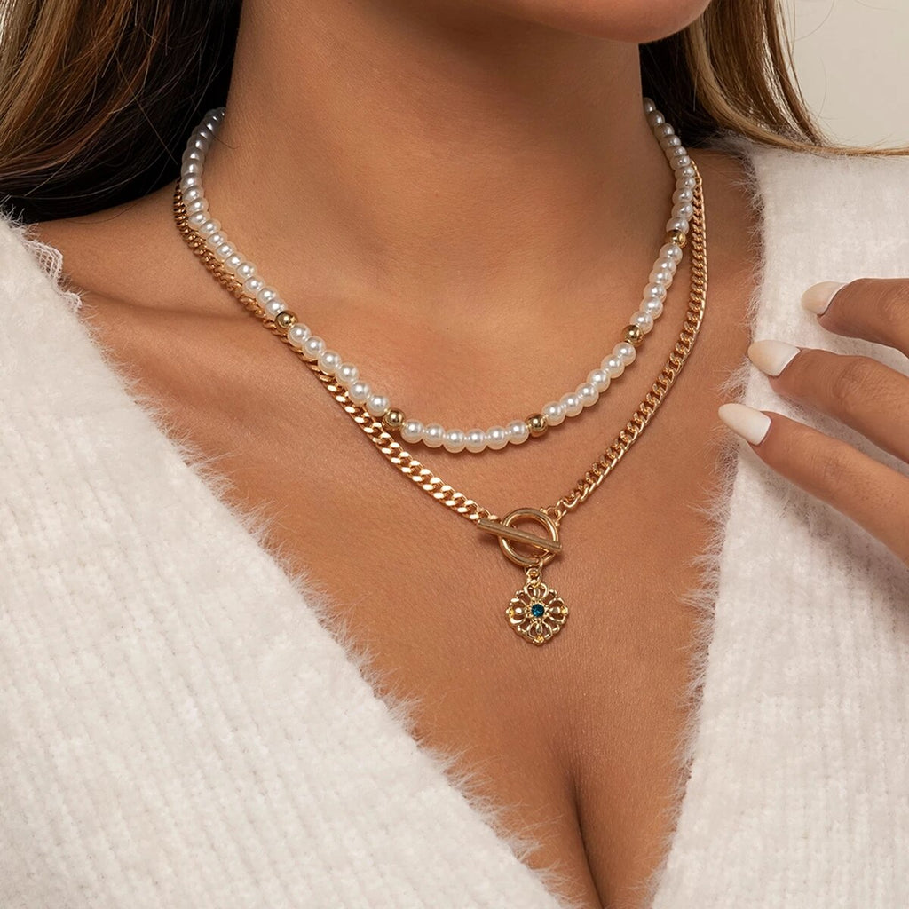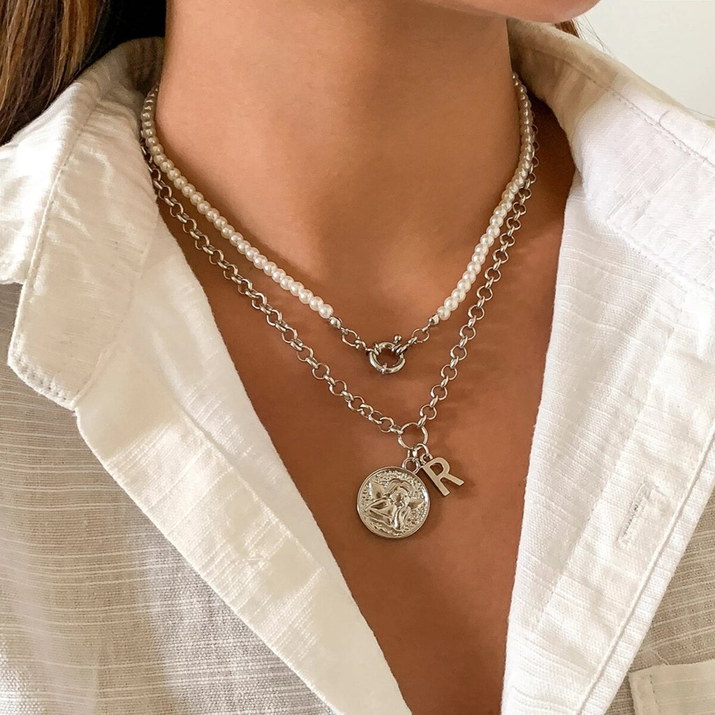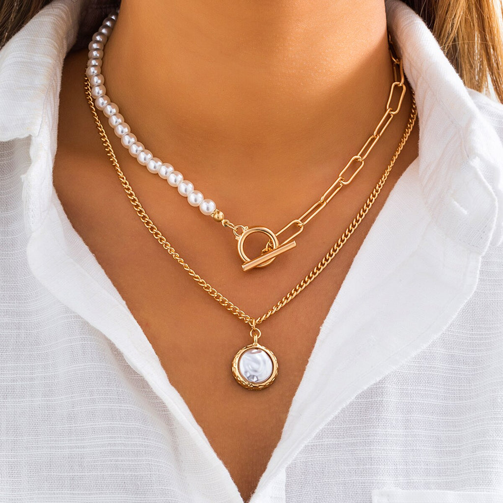 Color : Gold Color/Silver Color Chain Necklaces Set