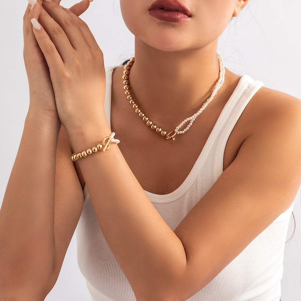 Vintage Neck Jewelry : Pearl beads Bracelet Necklace