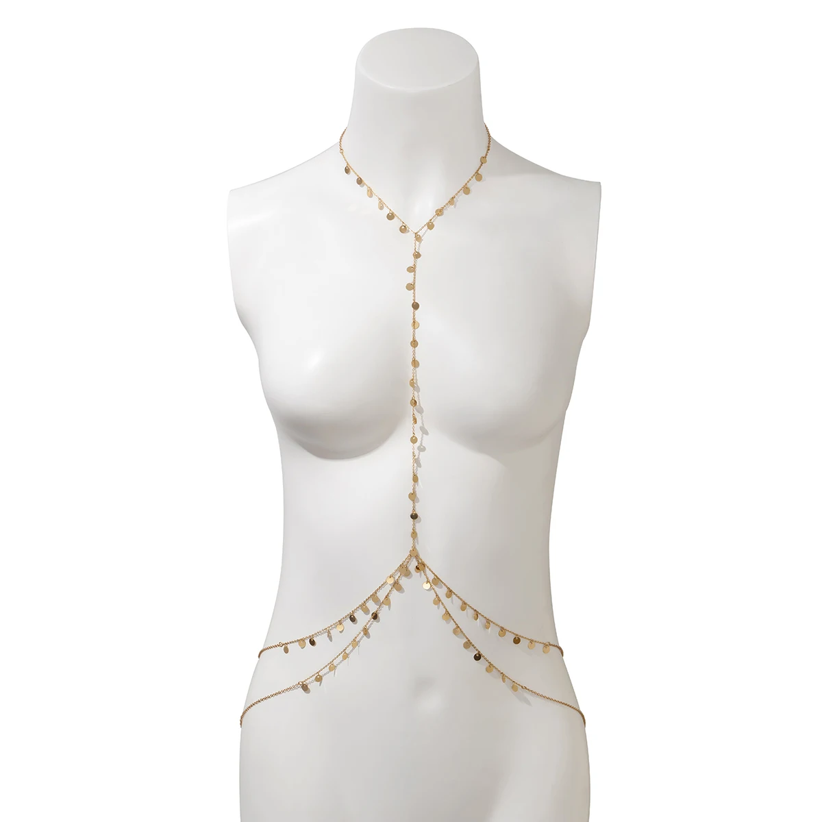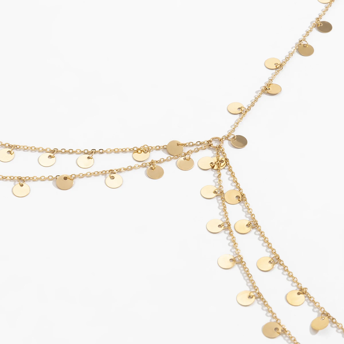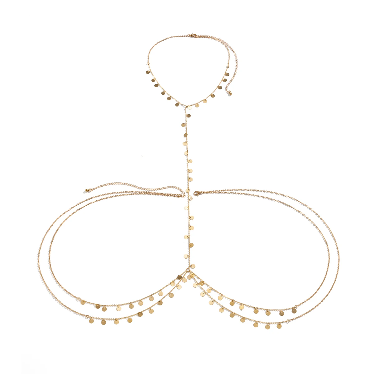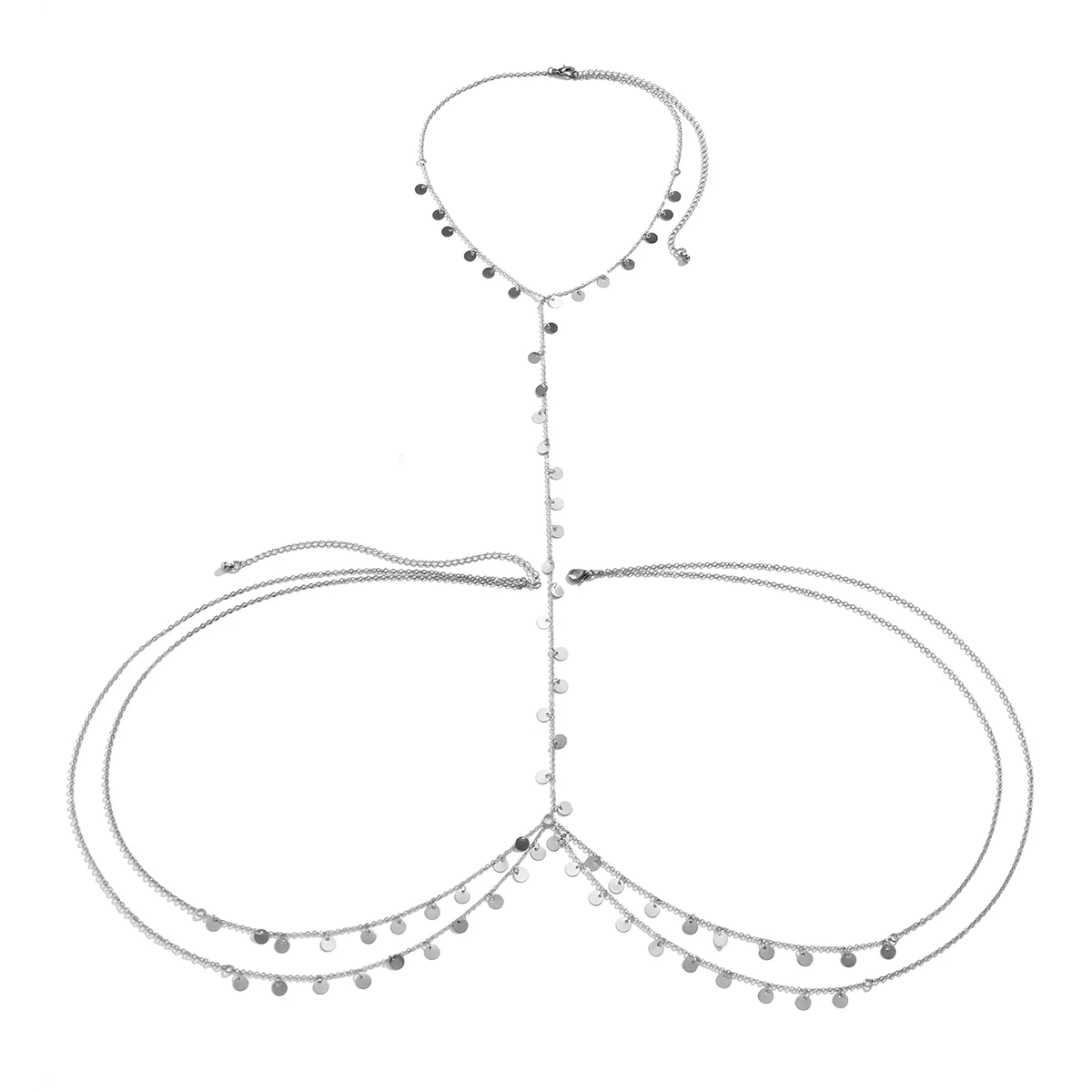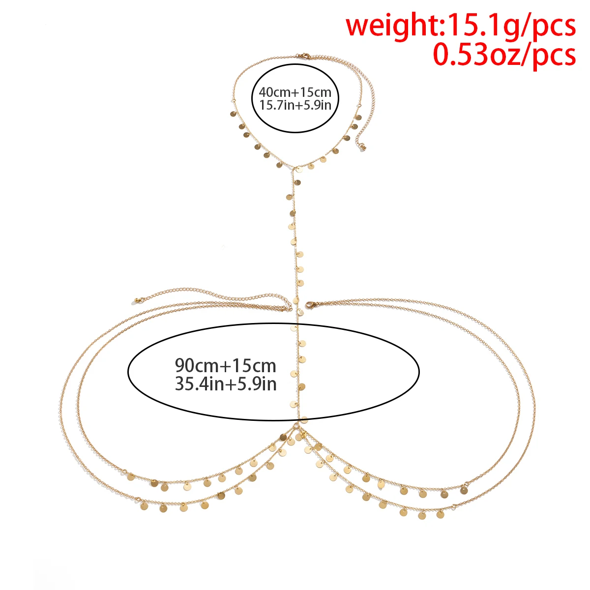 IngeSight.Z Simple Round Sequins Tassel Pendant Bikini Belly Bra Chain for Women Sexy Multi Layered Cross Chest Body Chain