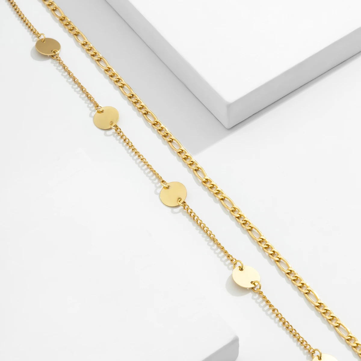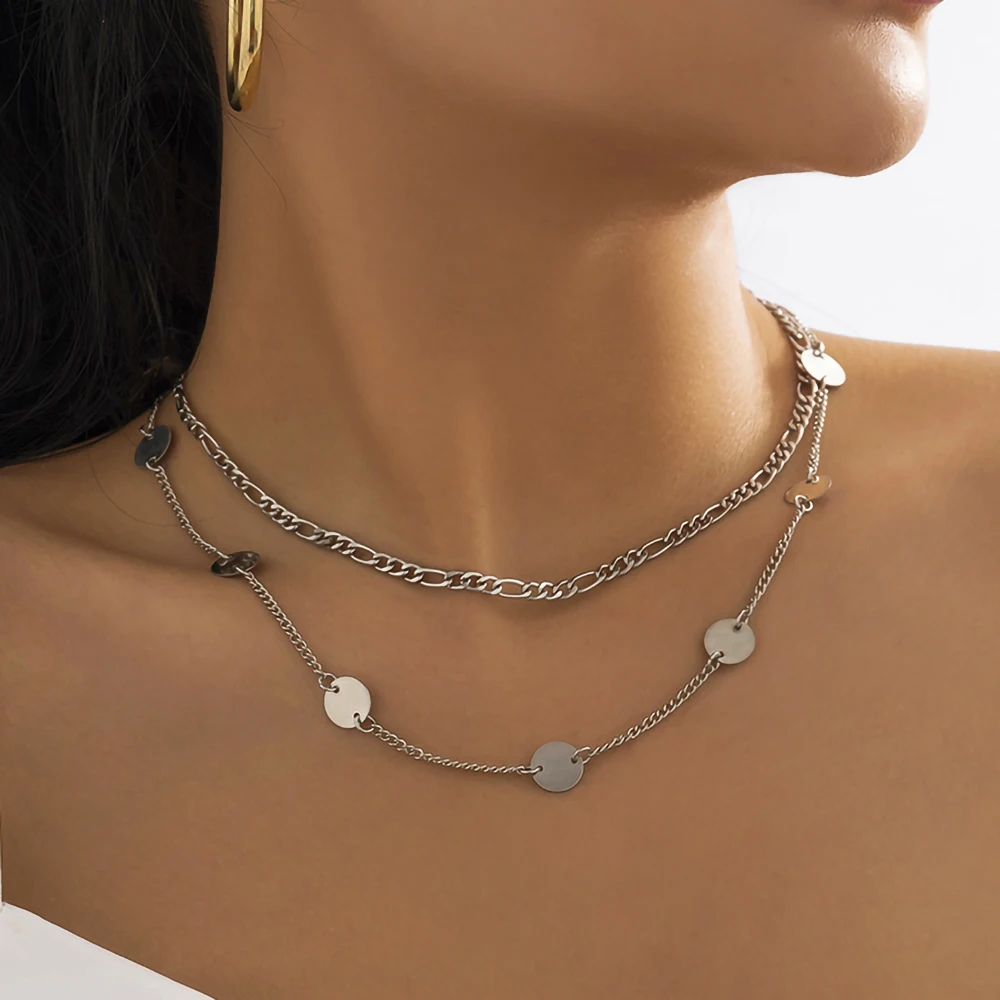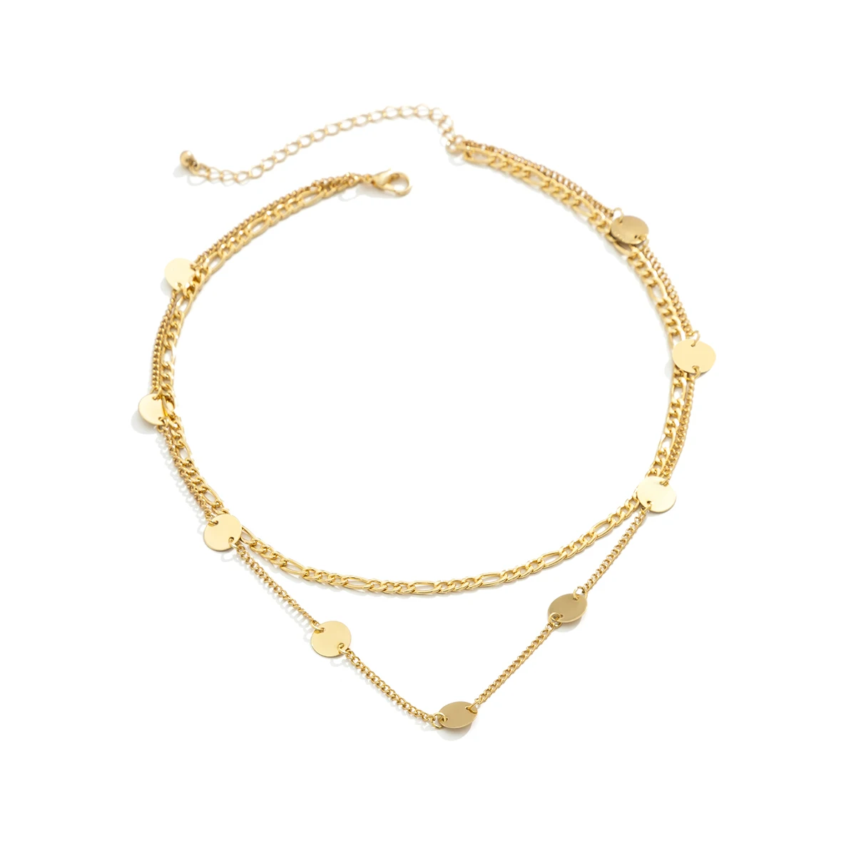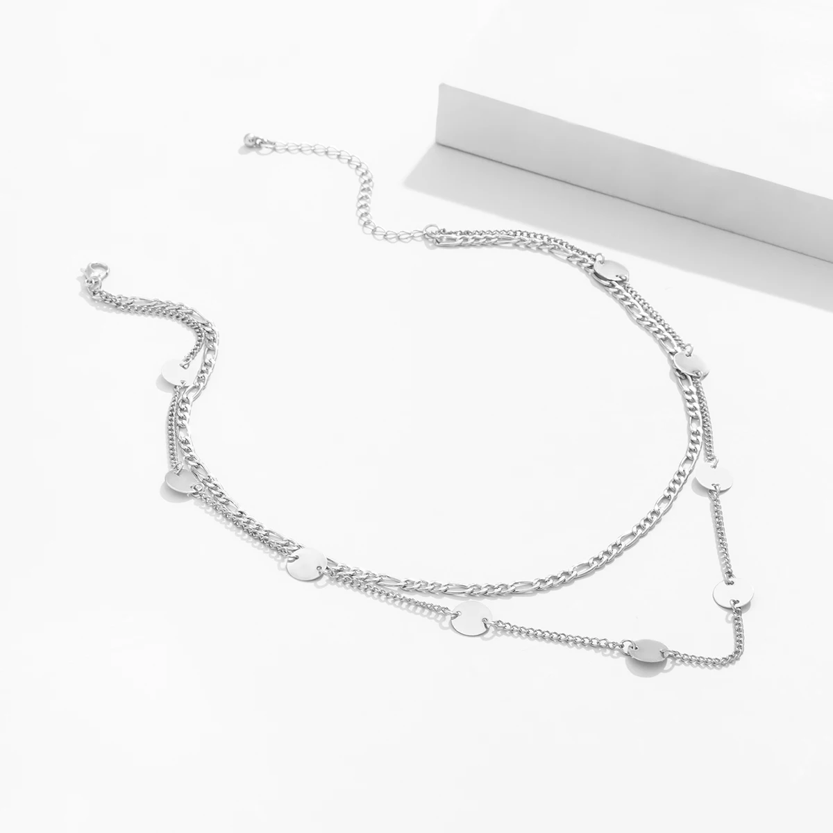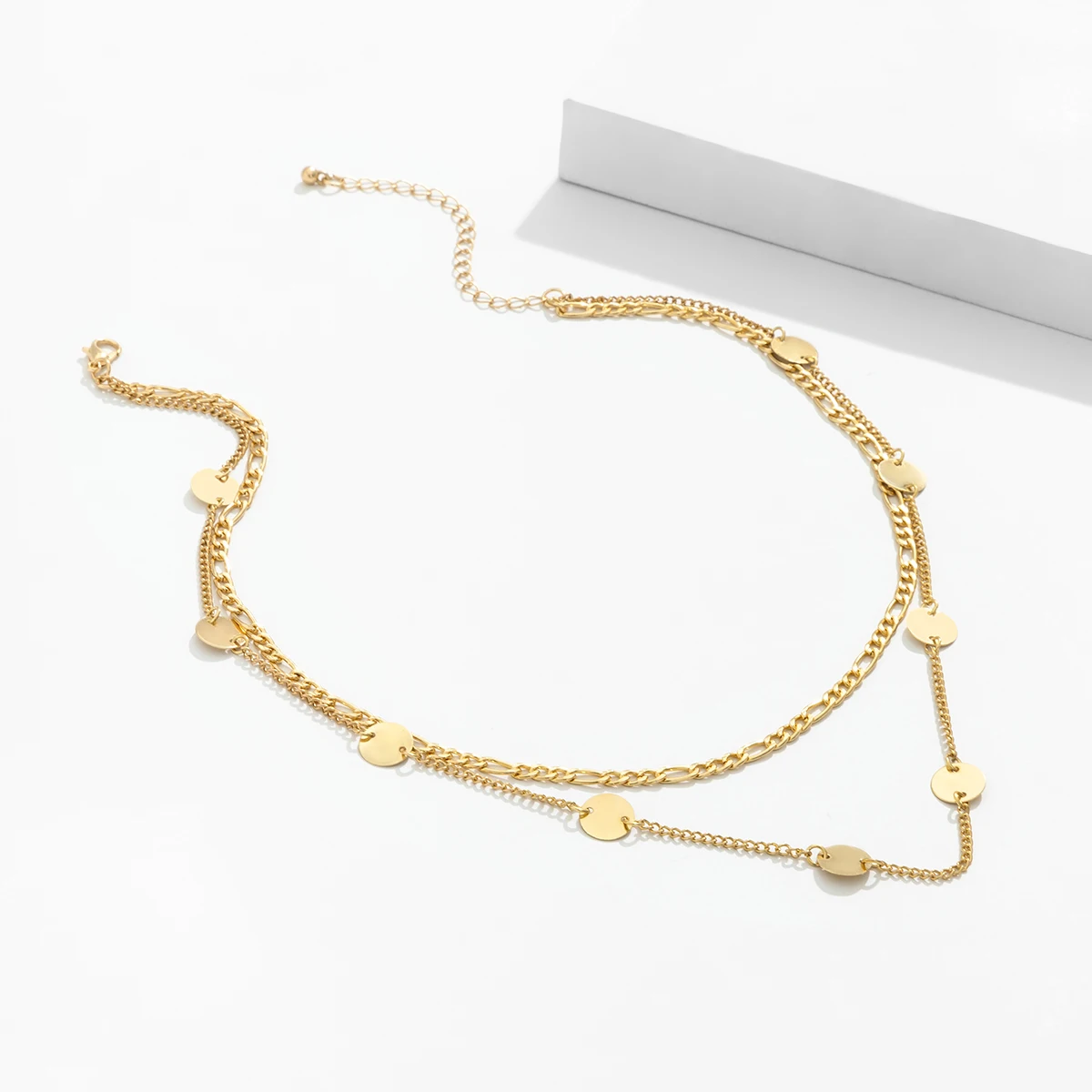 Female Choker Necklace Collar : Double Layer Coin Necklace