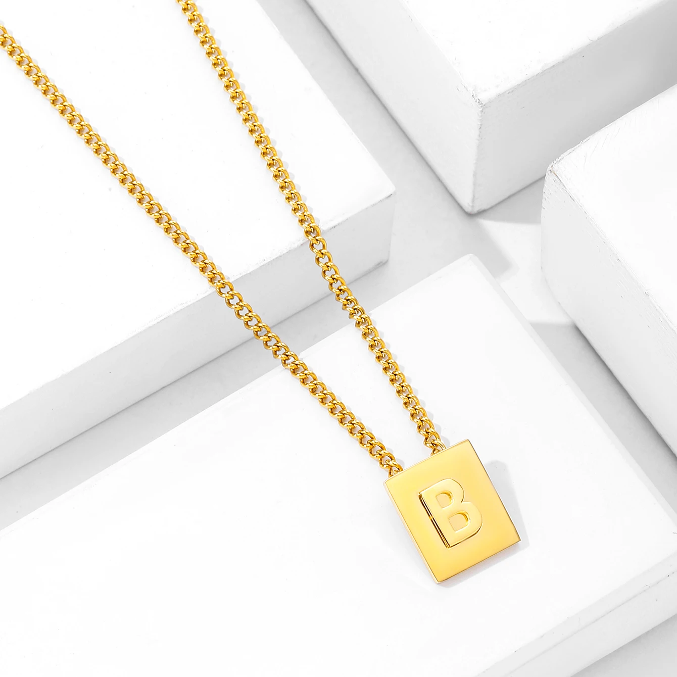 Initials Pendant Letter Name Necklace For Women Men Gold Silver Color Square Alphabet Charm Box Link Chain Couple Pendants