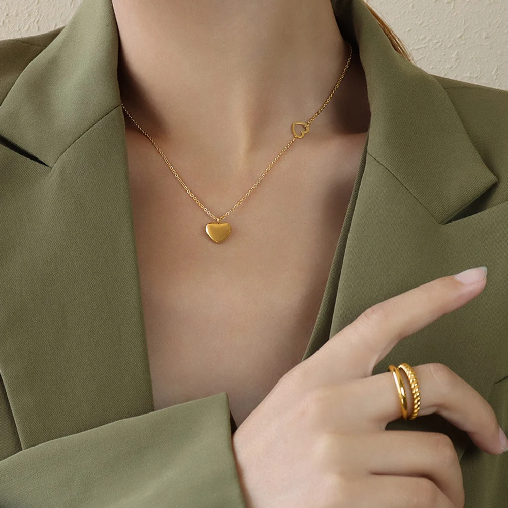 Ins jewelry chocker mini double peach heart love clavicle chain necklace female titanium steel 18K gold plated necklace Fashion