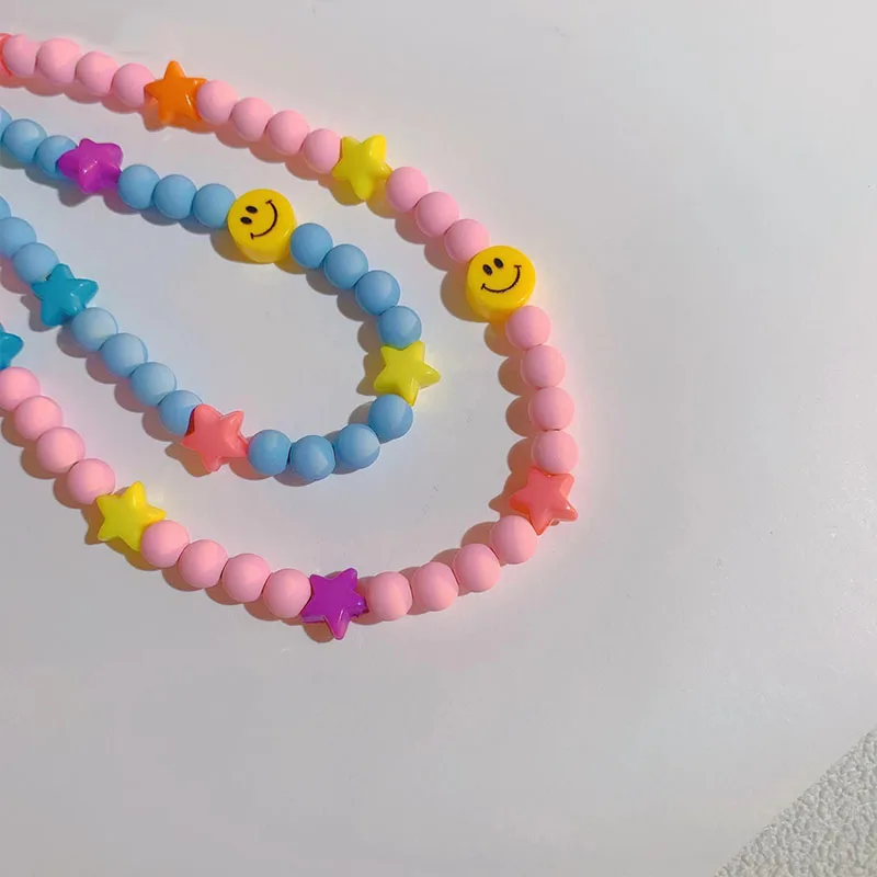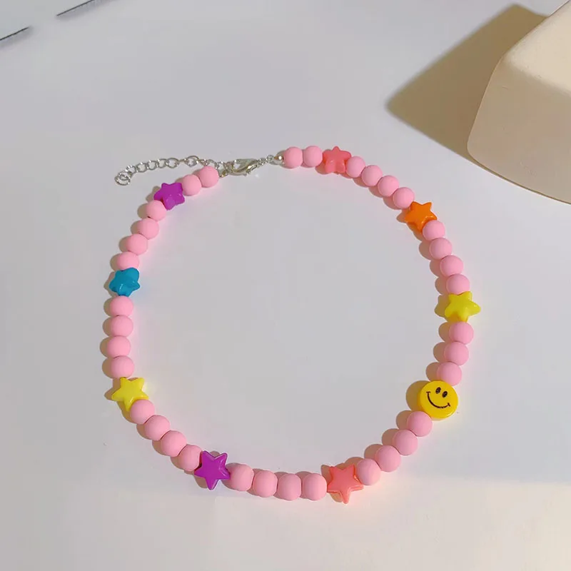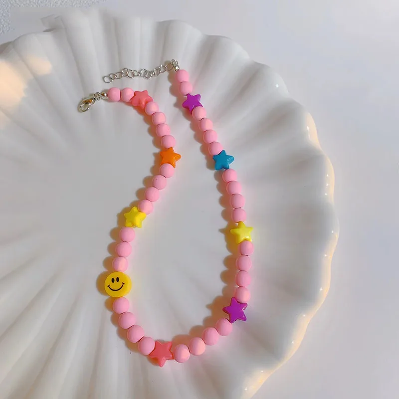 INS Korean Colorful Resin Acrylic Frosted Beads Star Smiley Handmade Choker Necklace For Women Girls Party Accessories Gift