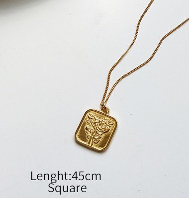 Boho Mirror Circle Square Rose Flower Pendant Necklace 925 Sterling Silver Fine Jewelry 45CM or 55CM Chain For Women Gift