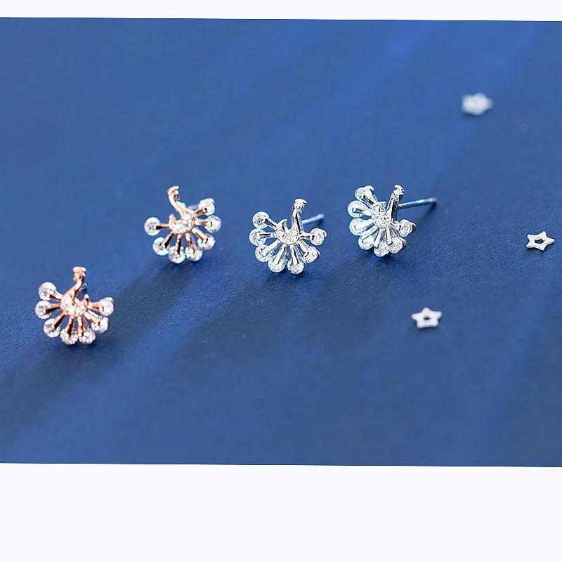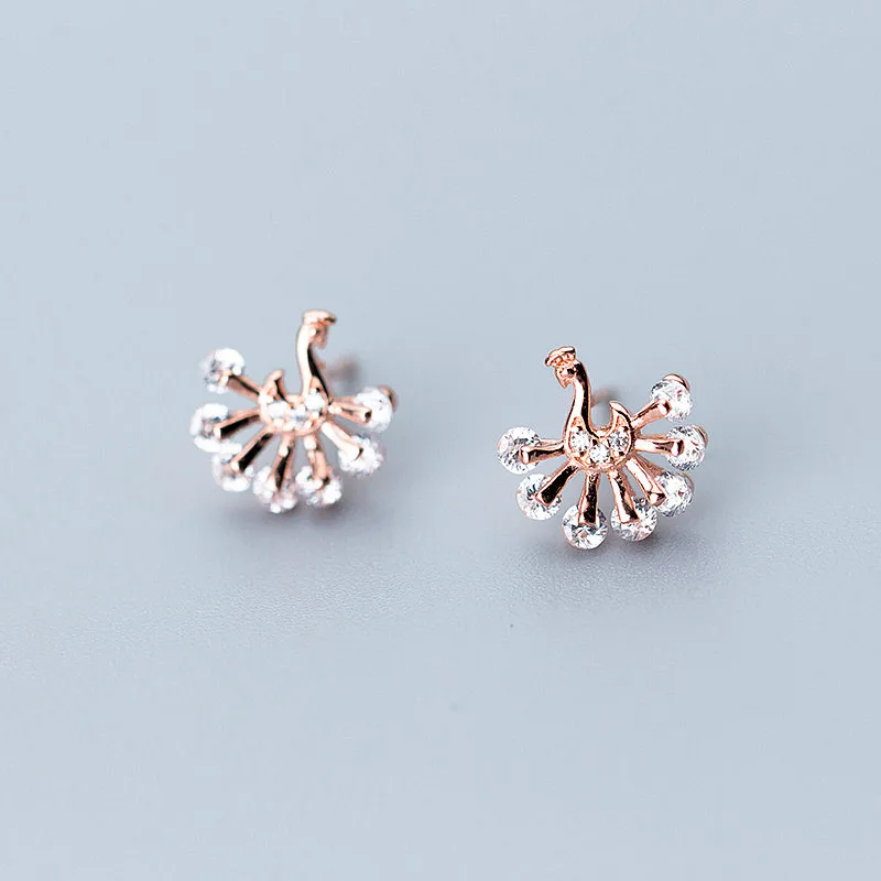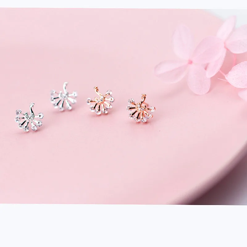 Ethnic Peacock Shape Real 925 Sterling Silver Stud Earrings Piercing Delicate Charming Women Birthd Party Fine Jewelry