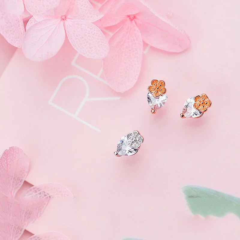 Personality Crystal Flower Stud Earrings 2020 Charm 925 Sterling Silver Fine Jewelry For Women Party Cute Accessories