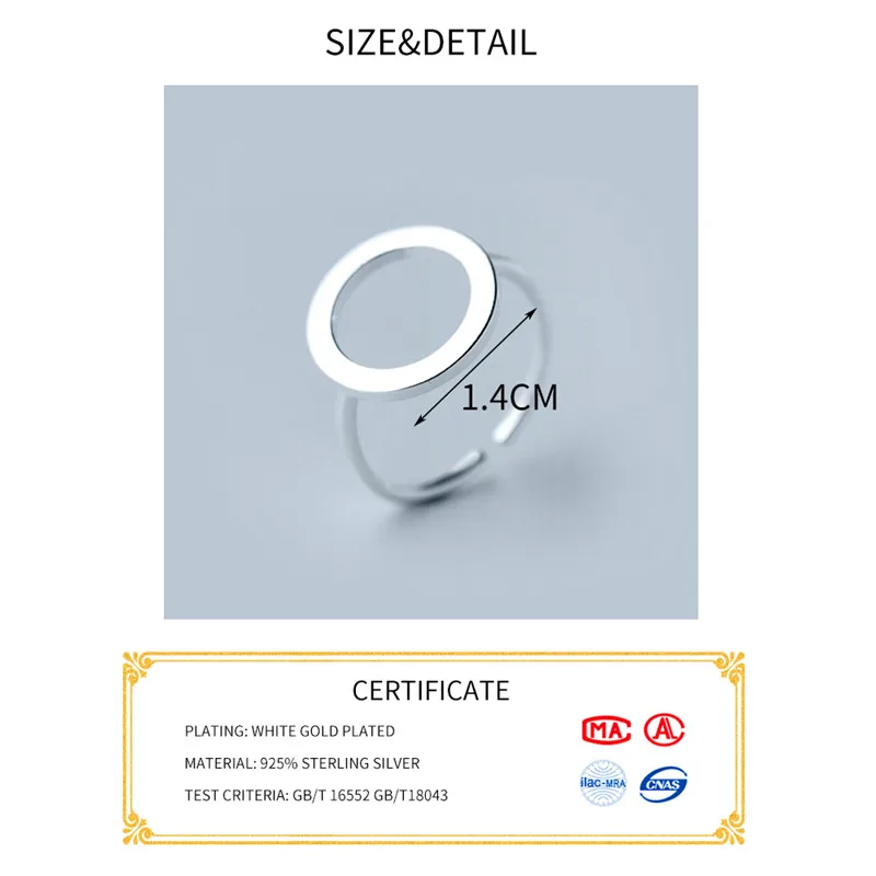 Real 925 Sterling Silver Geometric Hollow Round Adjustable Ring Minimalist Fine Jewelry For Women Party Punk Accessories