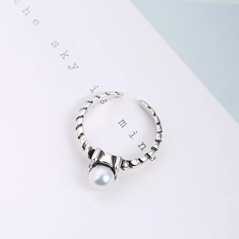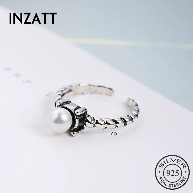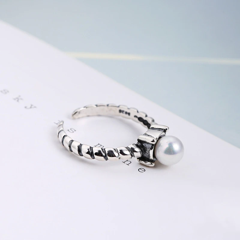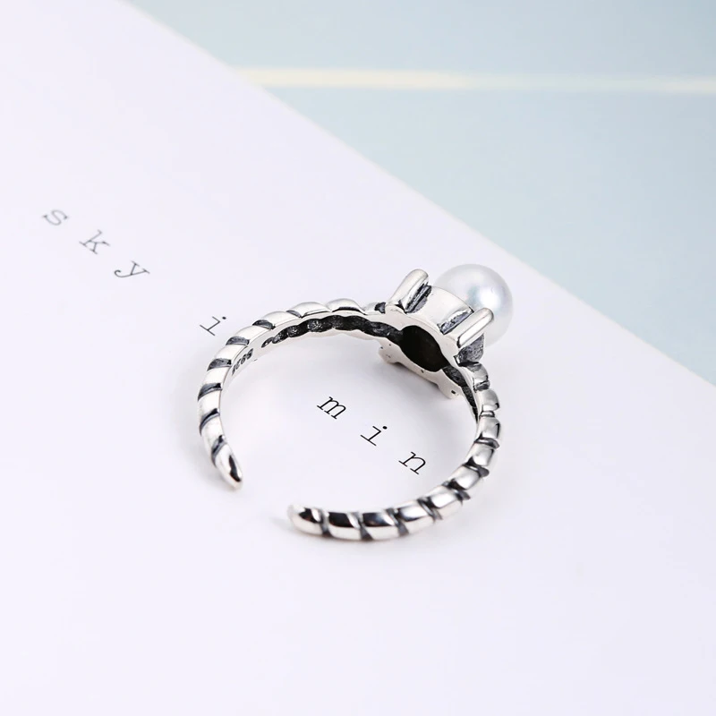 Real 925 Sterling Silver Vintage Twist pearl Adjustable Ring Prevent allergy Fine Jewelry For Women Party Accessories