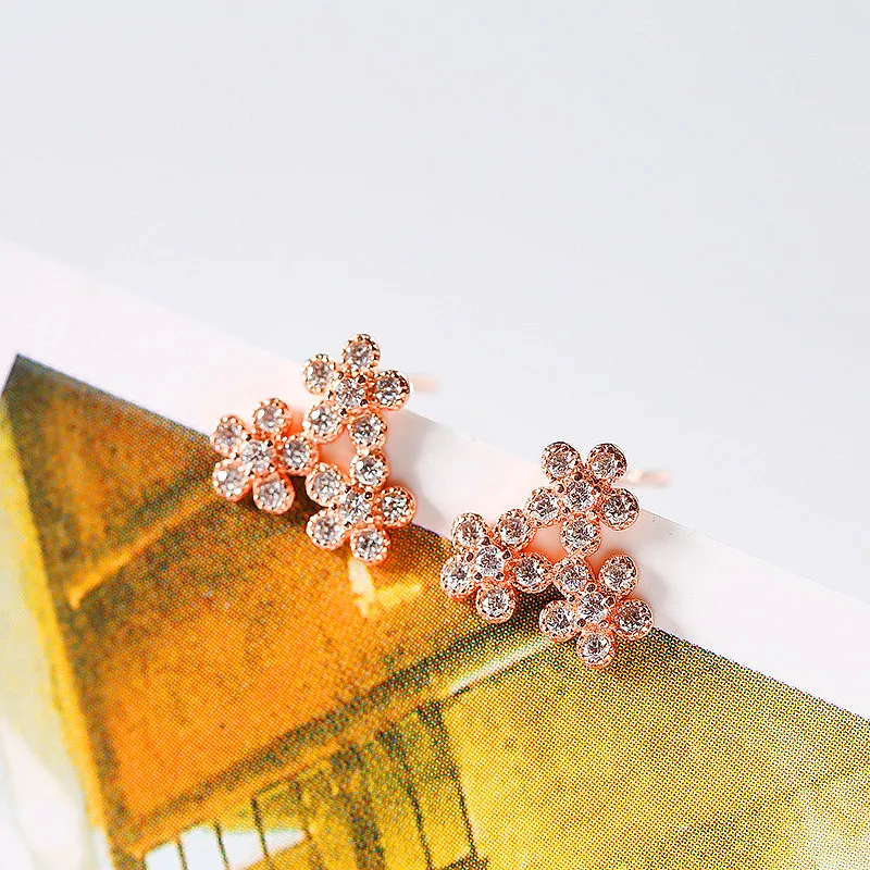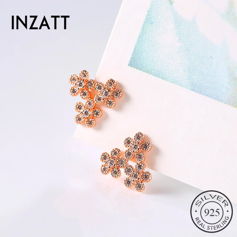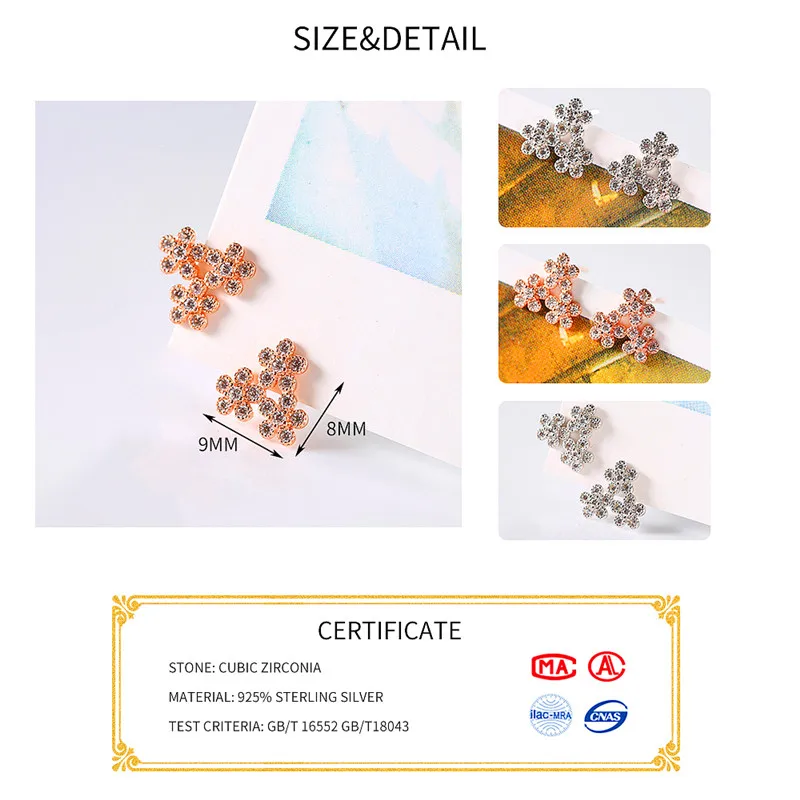 Romantic 925 Sterling Silver Snowflake Zircon Flower Stud Earrings Fine Jewelry Two Colors For Women Wedding Party Gift