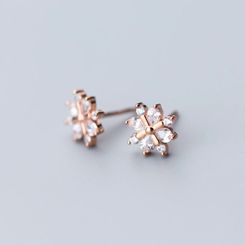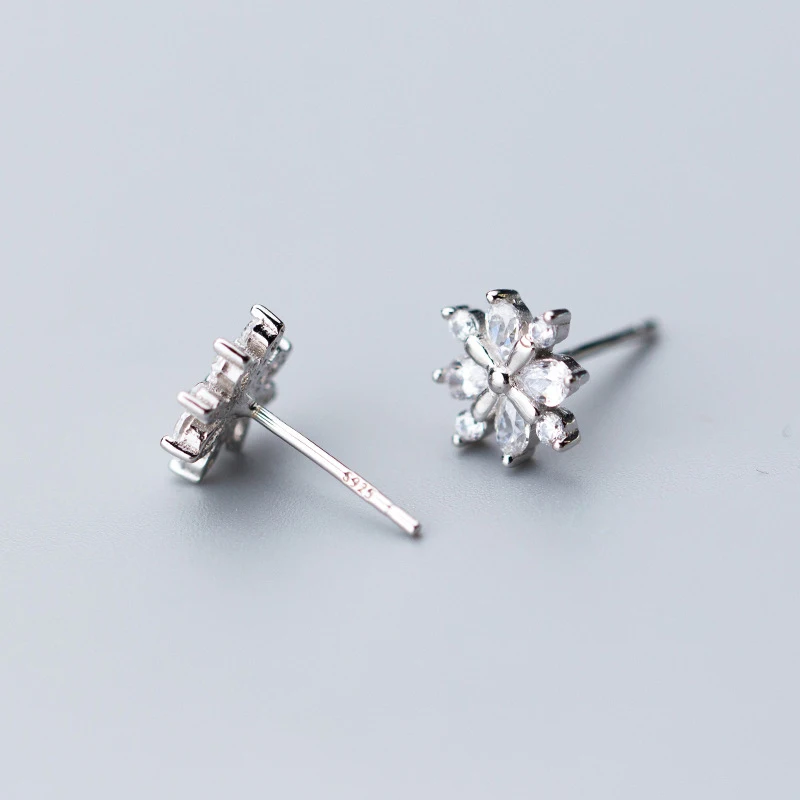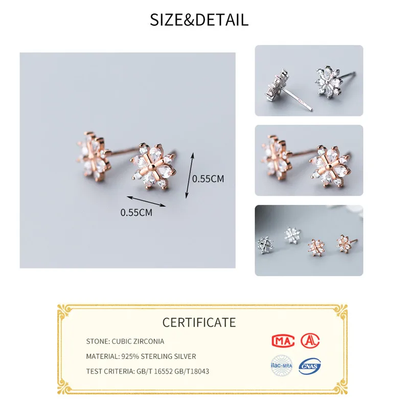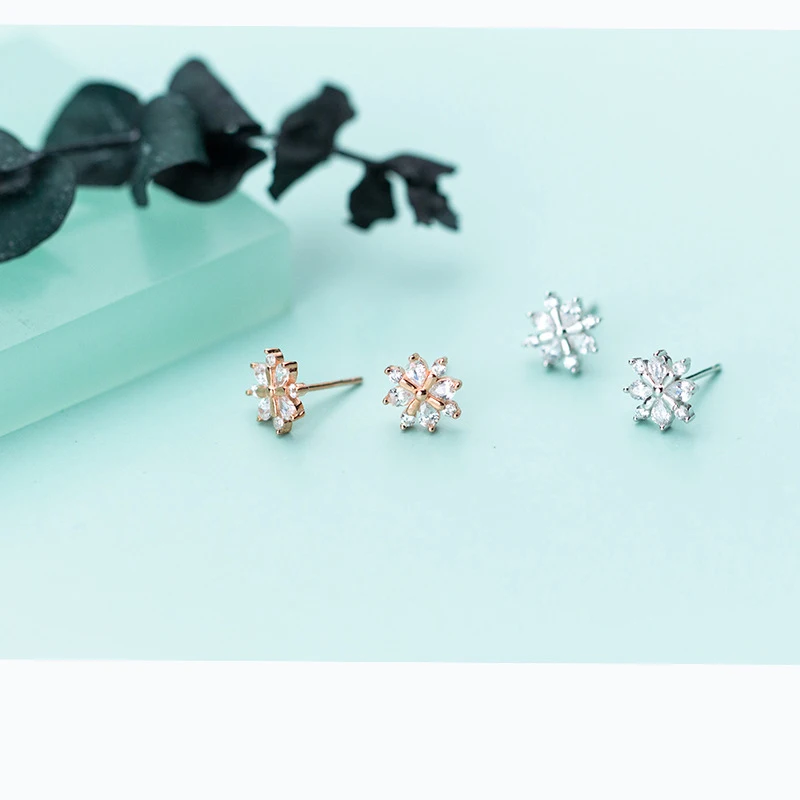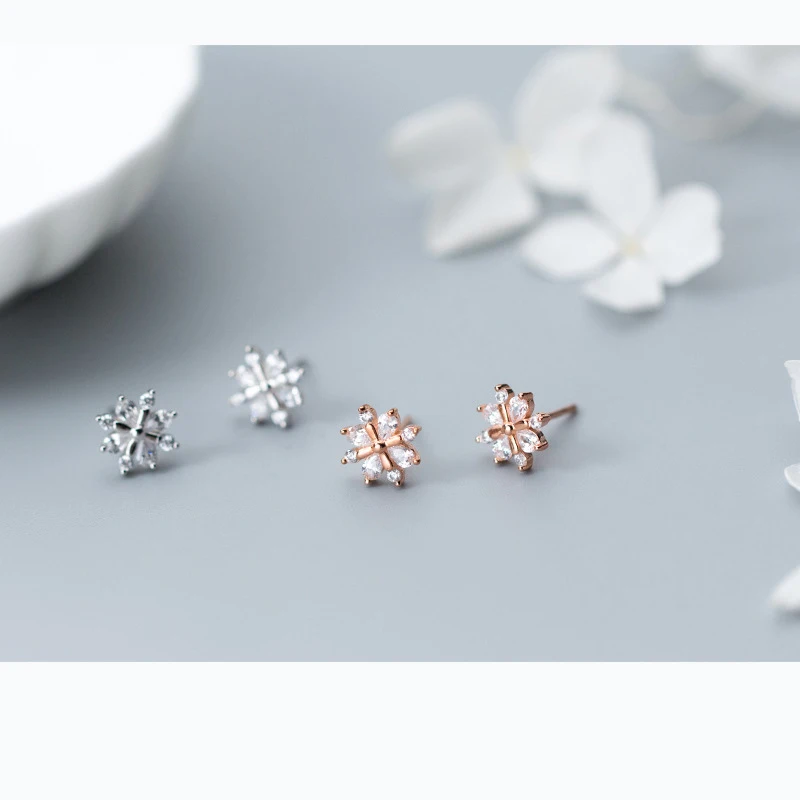 Romantic Zircon Snowflake Stud Earrings 925 Sterling Silver Prevent Allergy Fine Jewelry For Women Birthd Party Bijoux