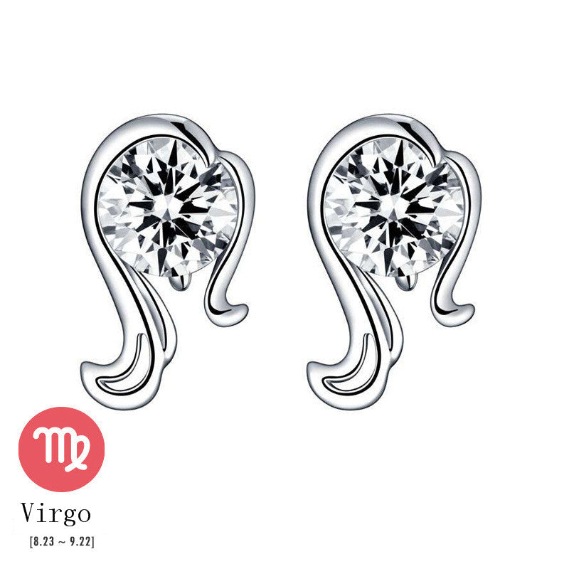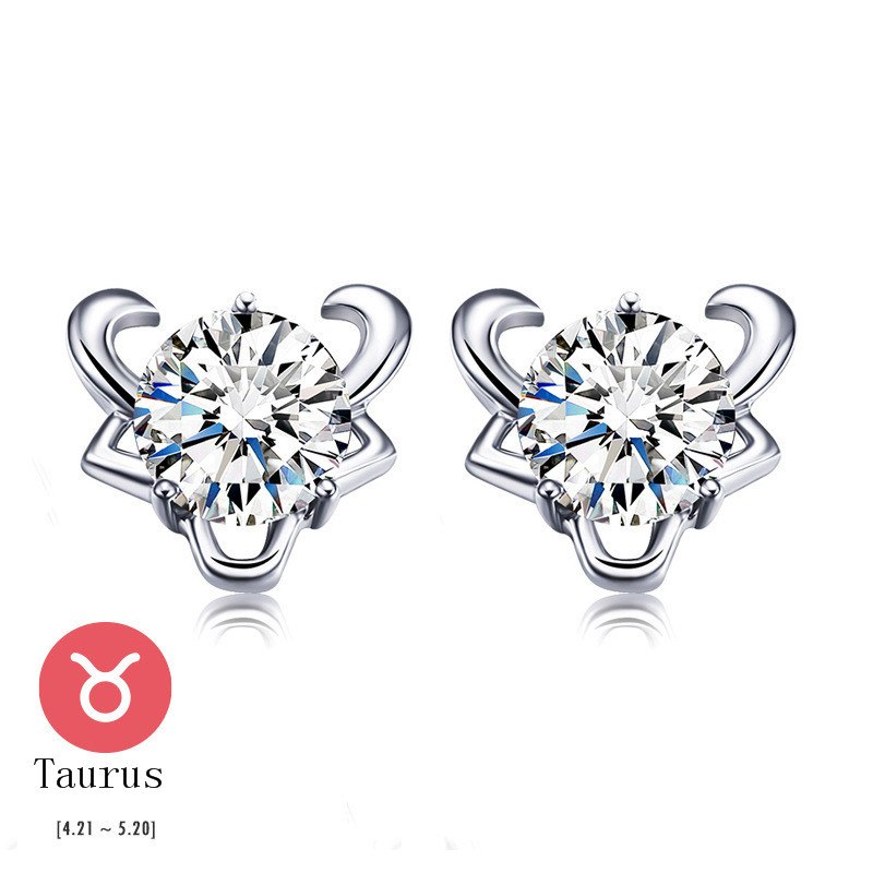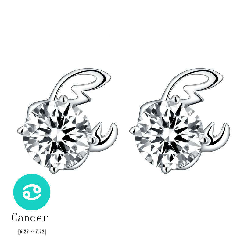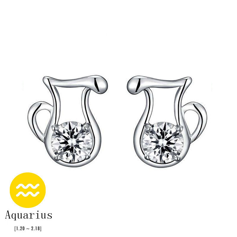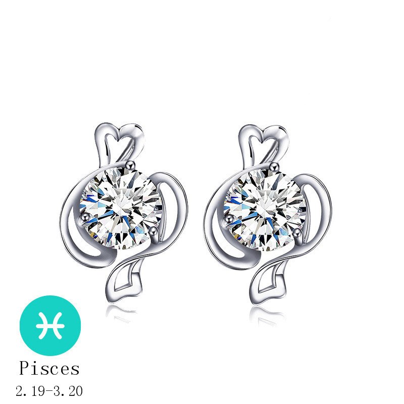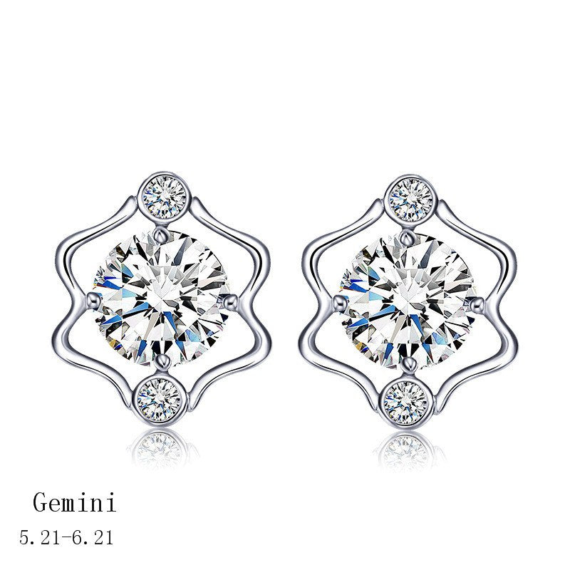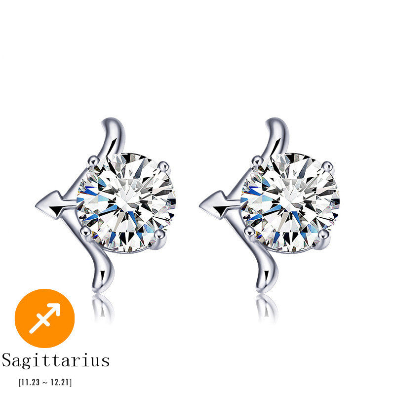 Trendy Real 925 Sterling Silver Zircon Constellation Stud Earrings Party For Women Leo Gemini Aries Fine Jewelry Gift