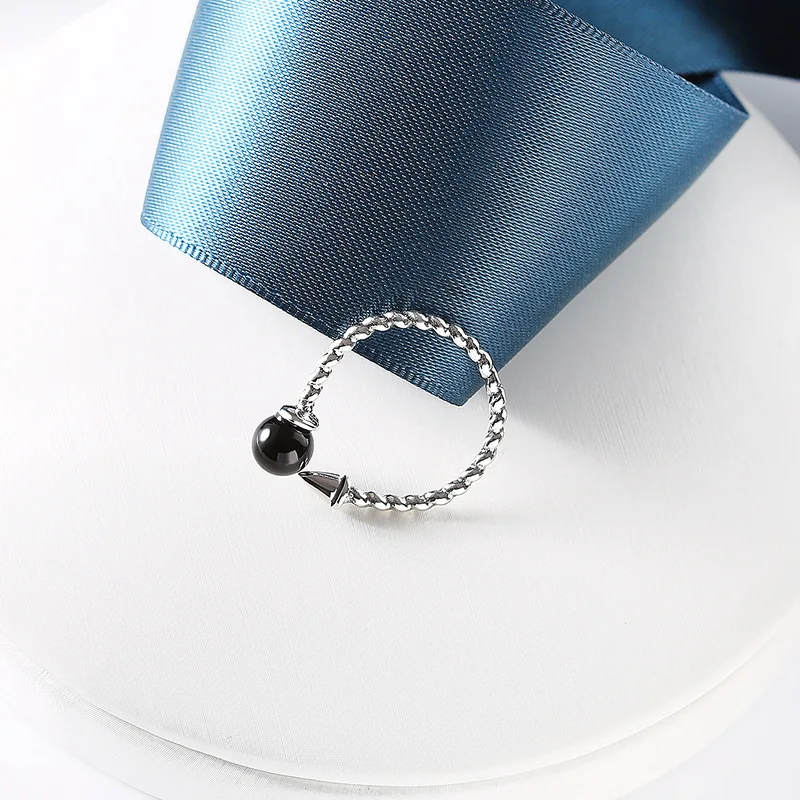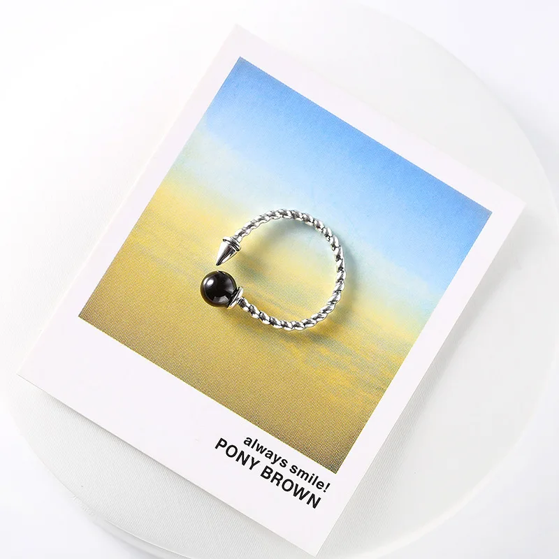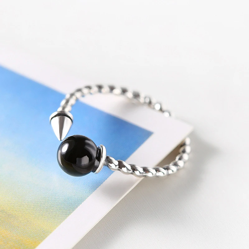 Vintage Personality Conical Arrow black Agate Adjustable Spiral Ring Real 925 Sterling Silver Fine Jewelry For Women Gift