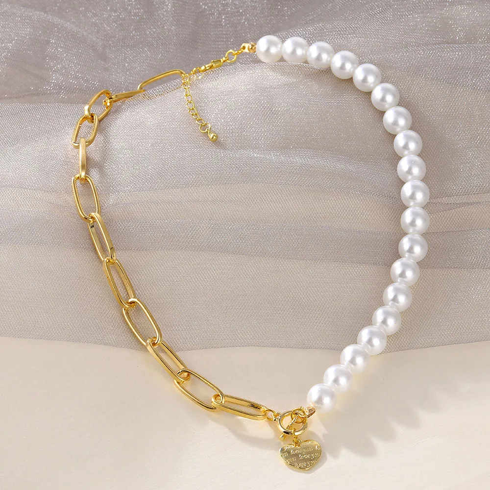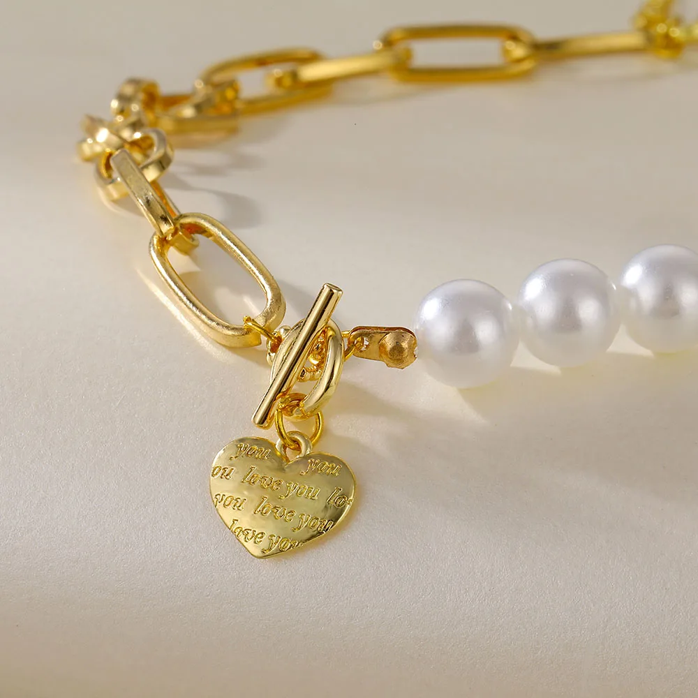 IPARAM Vintage Pearl Heart Thick Chain Clavicle Necklace 2021 Gothic Circle Heart Geometric Short Necklace Women Jewelry