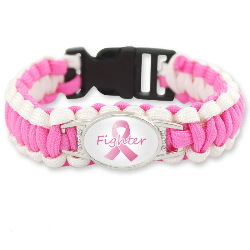 Breast Cancer Awareness Medical Alert Bracelet For Women Outdoor Camping Rescue Braided Rope Survival Bracelet Jewelry