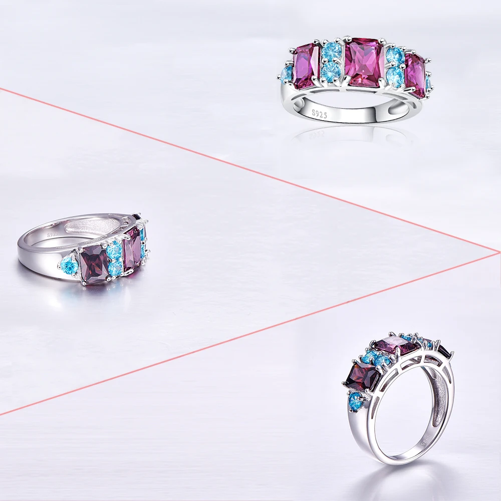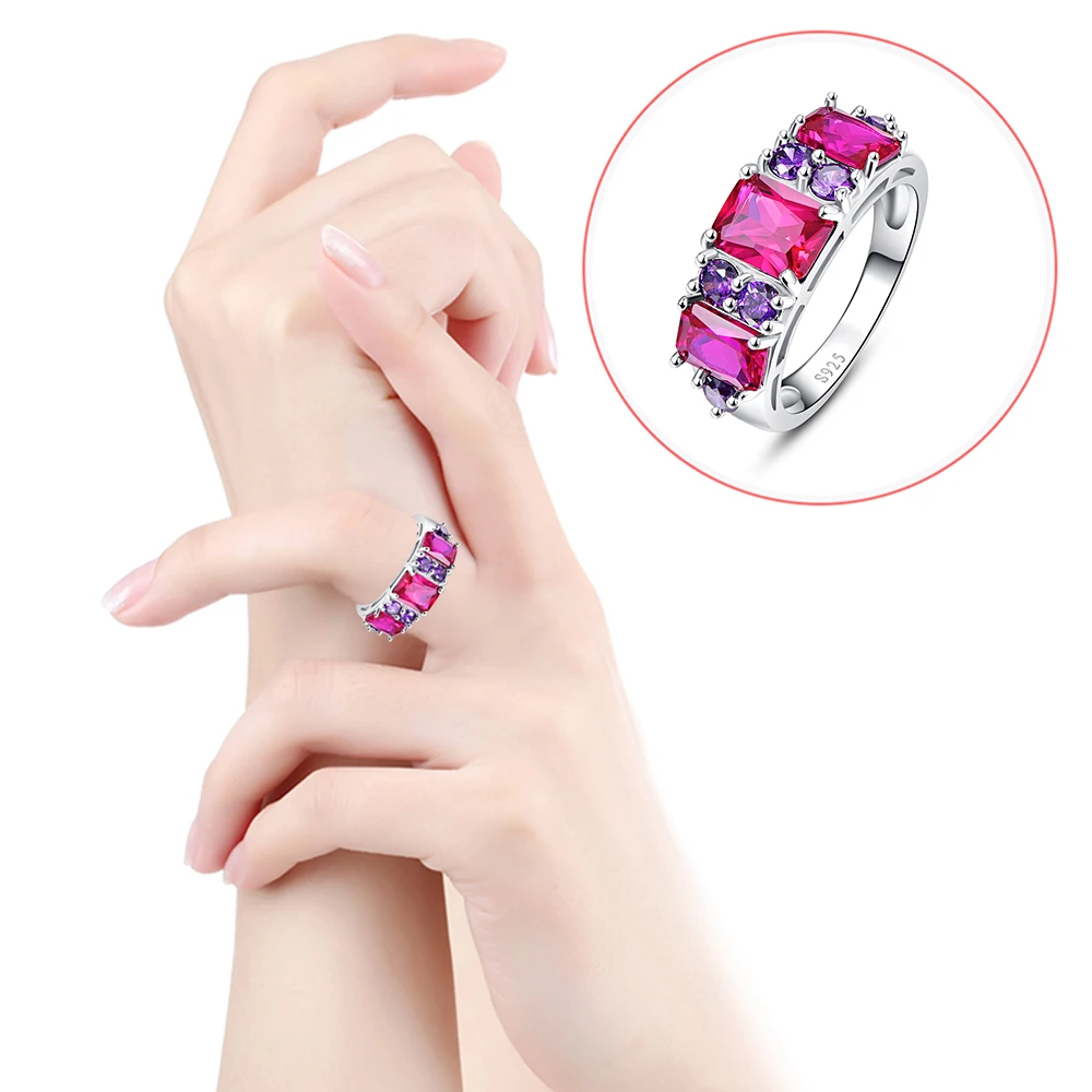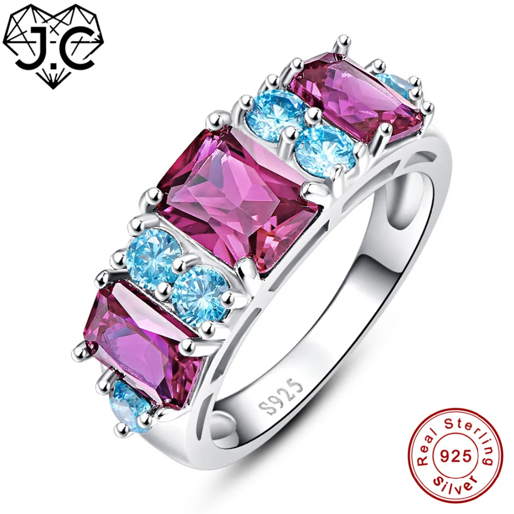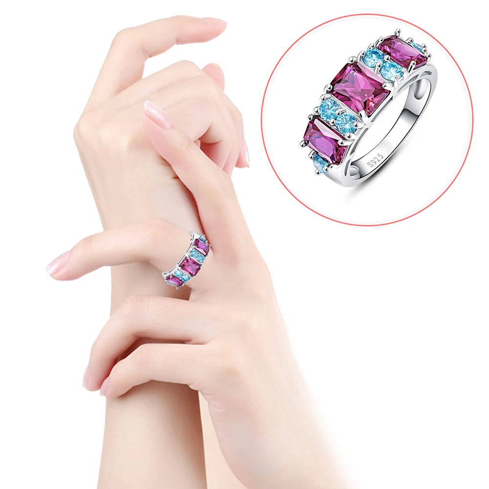 2 Colors Combined Ruby Spinel & Amethyst Blue Topaz Real 925 Sterling Silver Ring Size 6 7 8 9 Exquisite Beauty Fine Jewelry