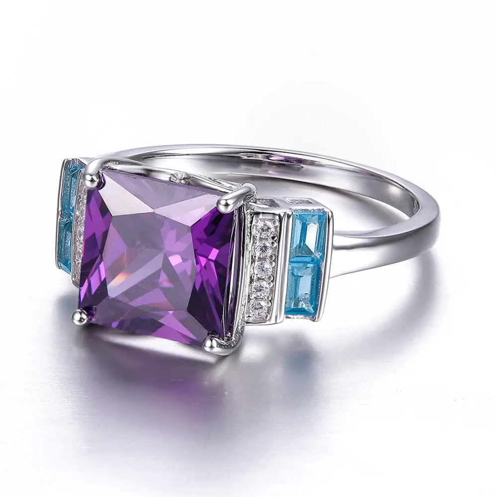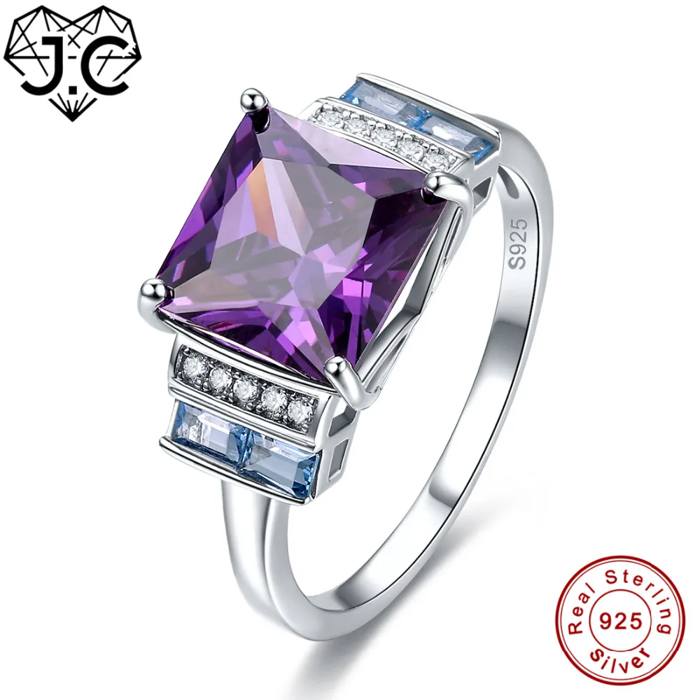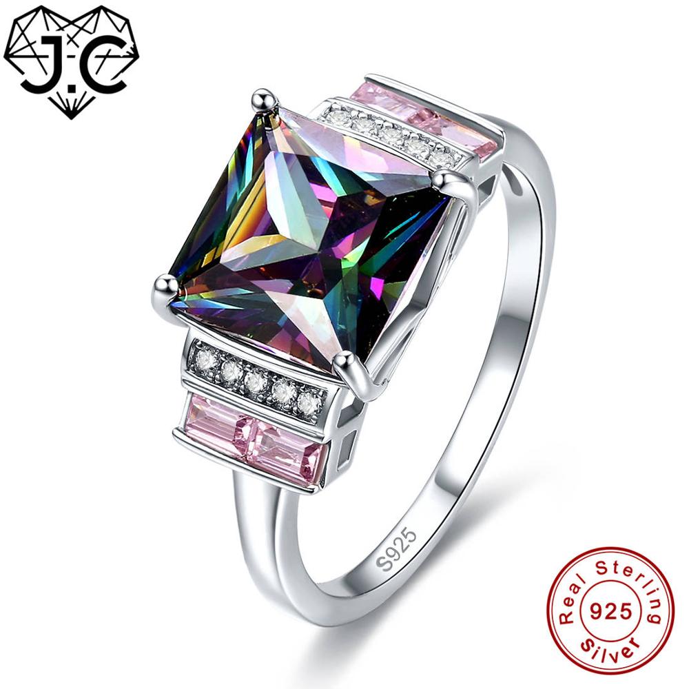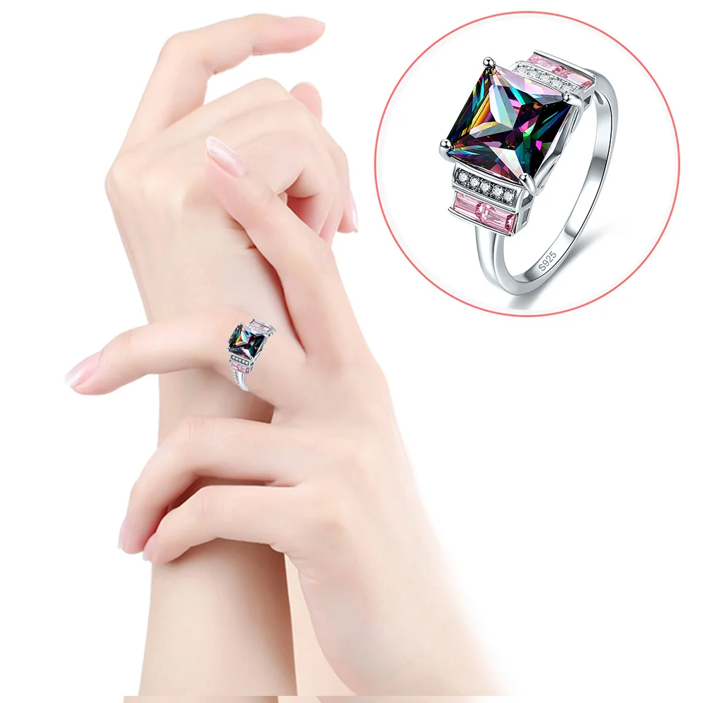 Amethyst Rainbow Fire Mystic Pink Blue Topaz Real 925 Sterling Silver Ring Size 6 7 8 9 Women Gorgeous Wedding Fine Jewelry