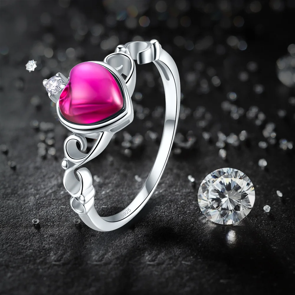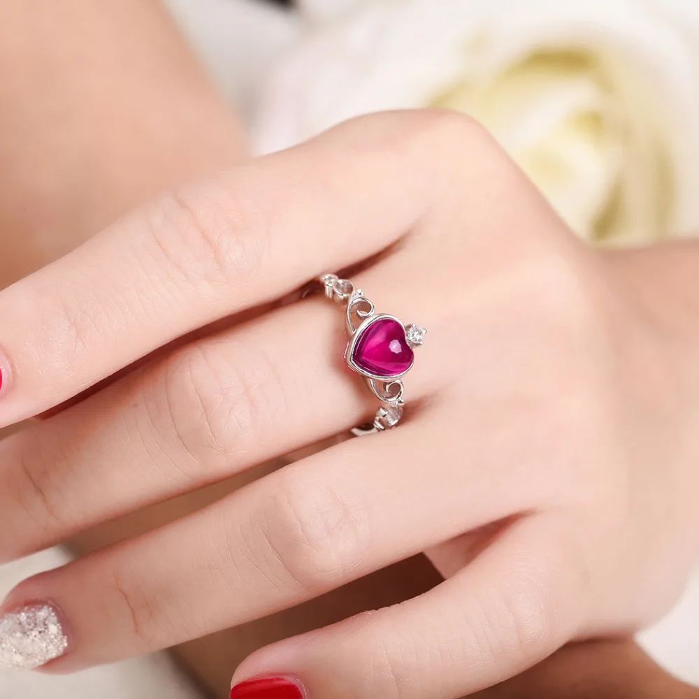 Heart Cut Ruby Spinel & Rainbow White Topaz Real 925 Sterling Silver Ring Size 6 7 8 9 For Lovers Classic Fine Jewelry Gift