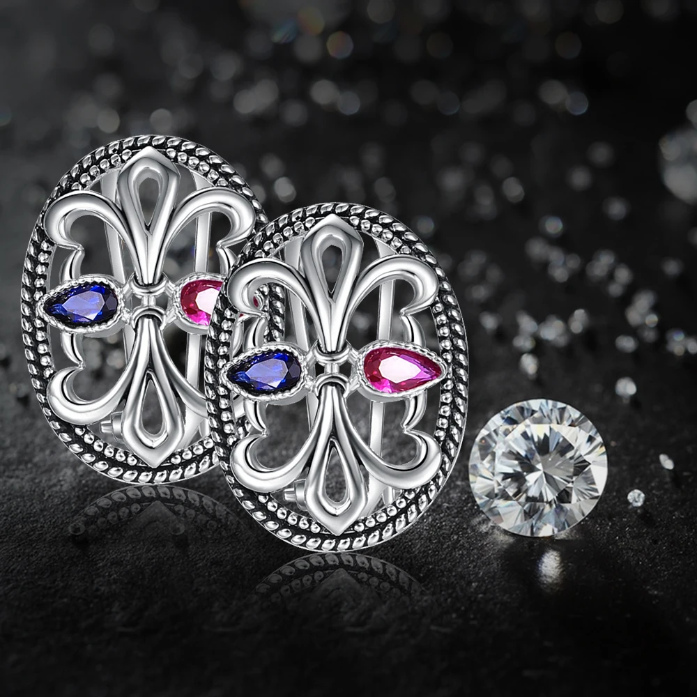 Luxury Earrings Real 925 Sterling Silver Earrings Sapphire Blue & Ruby Spinel Topaz Fashion Jewelry Gift of Women Earrings