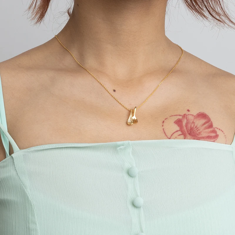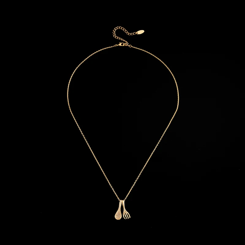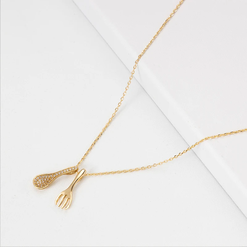 Jaeeyin 2021 s Cute Jewelry Spoon Fork Gold Color Cubic Zircon Paved Gift For Teen Clavicle Chain Necklace for Girls
